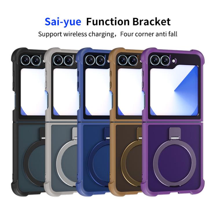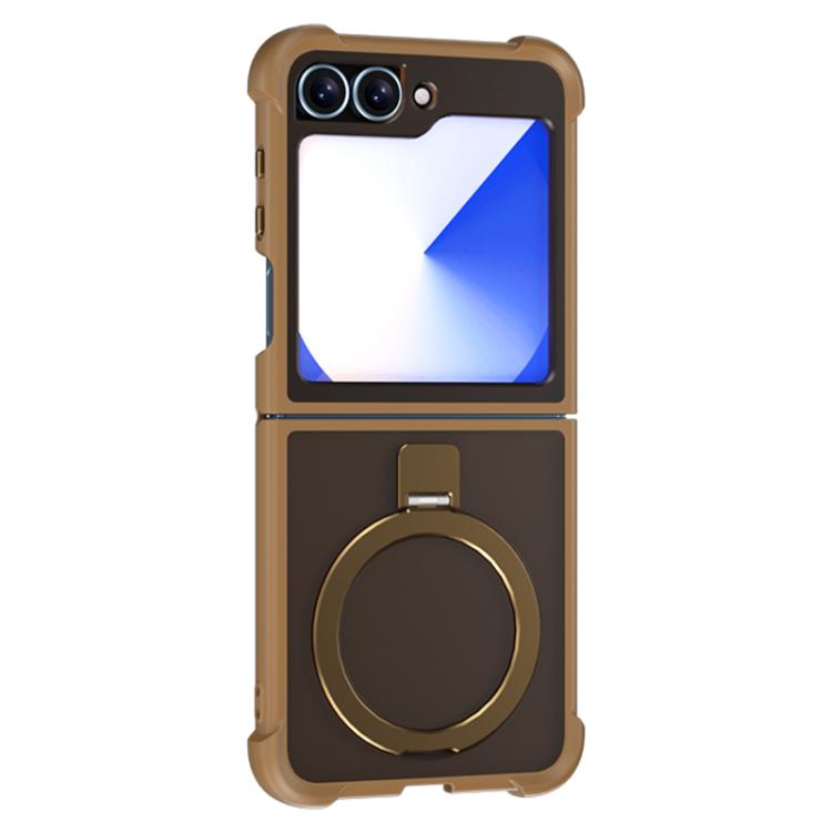 For Samsung Galaxy Z Flip7 FE /6 /5 Four-corner Shockproof MagSafe Holder Phone Case(Gold)