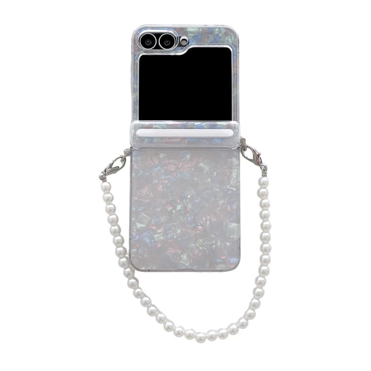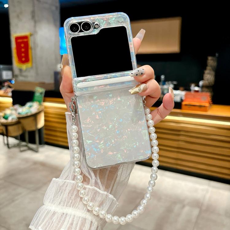 For Samsung Galaxy Z Flip7 FE / Flip6 Axis Pearlescent Shell Texture Phone Case with Bracelet(White)