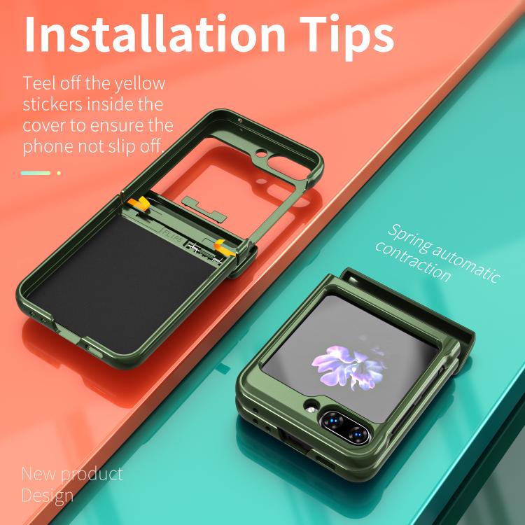For Samsung Galaxy Z Flip7 FE / Flip6 Kalebol Sliding Window Hinge Phone Case with Ring Stand(Green)