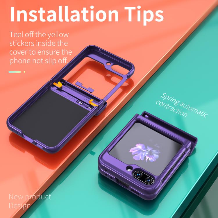 For Samsung Galaxy Z Flip7 FE / Flip6 Kalebol Sliding Window Hinge Phone Case with Ring Stand(Purple)
