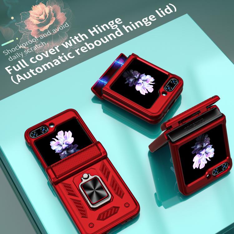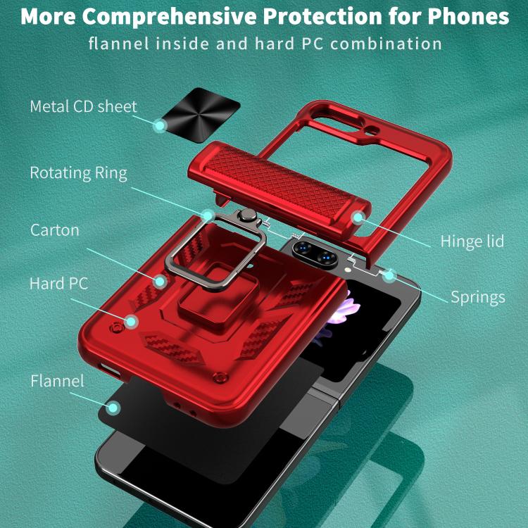 For Samsung Galaxy Z Flip7 FE / Flip6 Kalebol Sliding Window Hinge Phone Case with Ring Stand(Red)