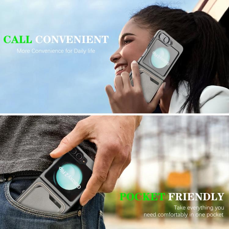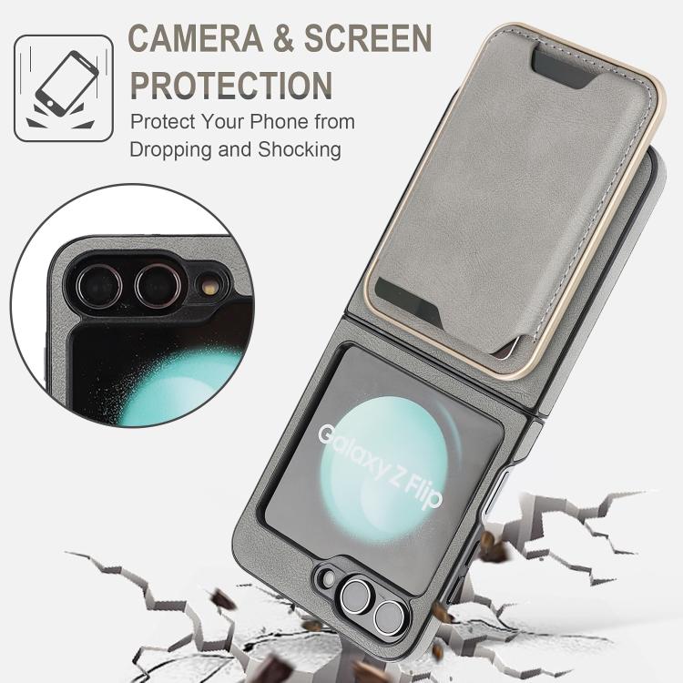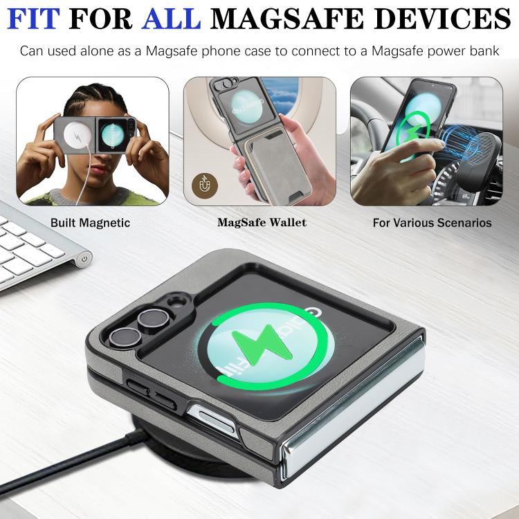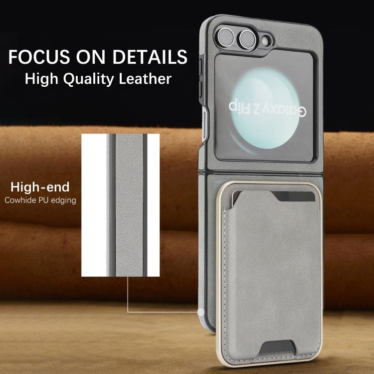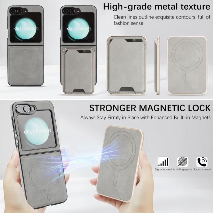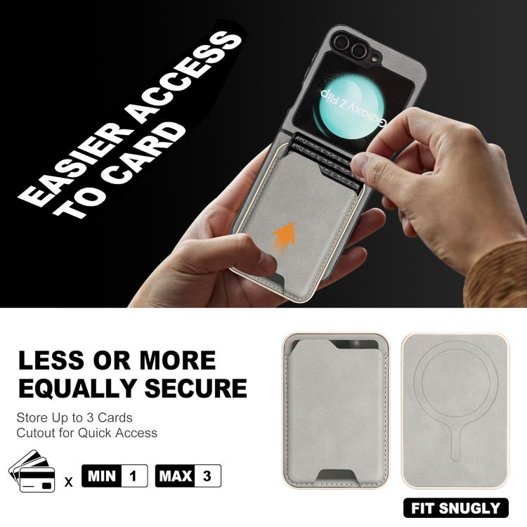 For Samsung Galaxy Z Flip7 FE / Flip6 Kalebol Slim MagSafe Ring Magnetic Card Bag Side Sticker Leather Phone Case(Gray)