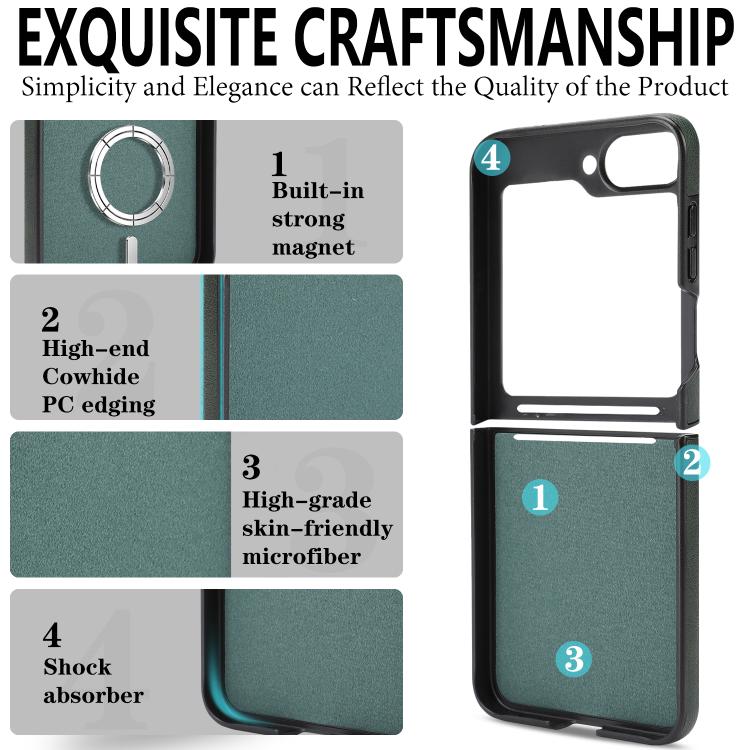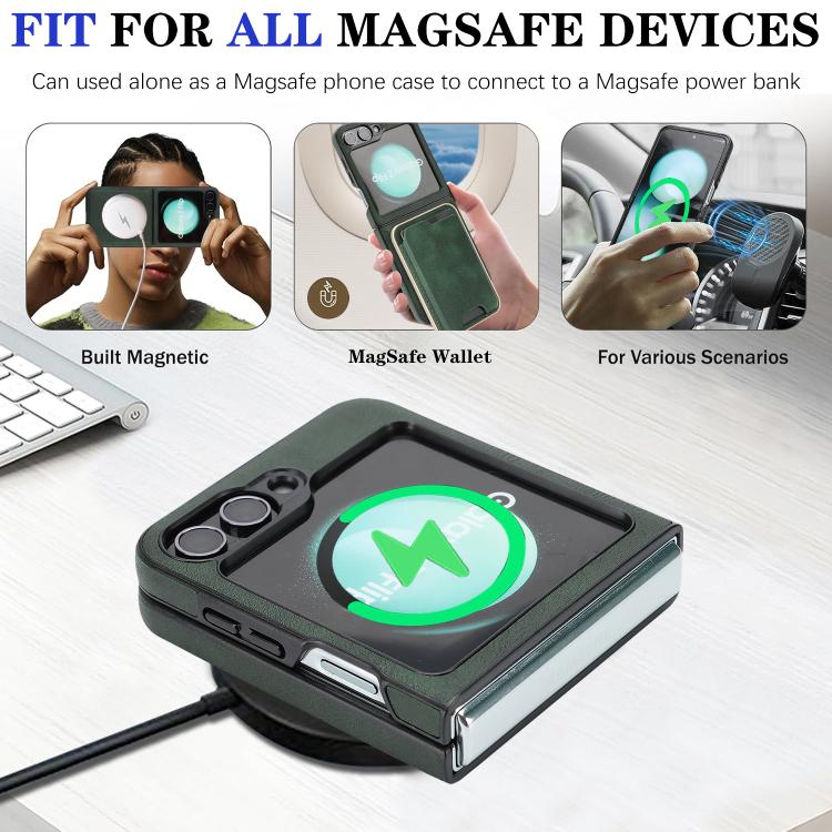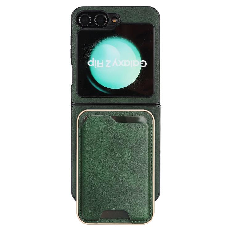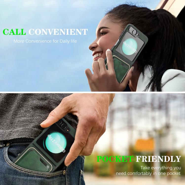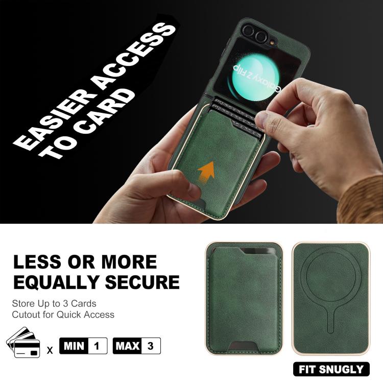 For Samsung Galaxy Z Flip7 FE / Flip6 Kalebol Slim MagSafe Ring Magnetic Card Bag Side Sticker Leather Phone Case(Green)
