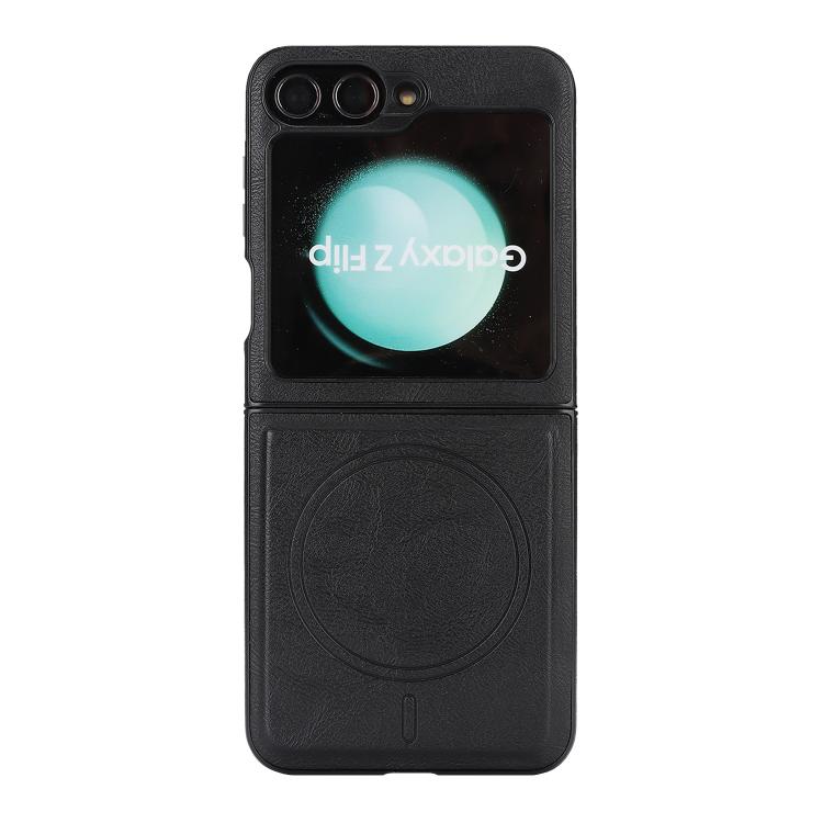For Samsung Galaxy Z Flip7 FE / Flip6 Kalebol Strong Magnetic MagSafe 2-Fold Ring Magnetic Card Case Leather Side Sticker Phone Case(Black)