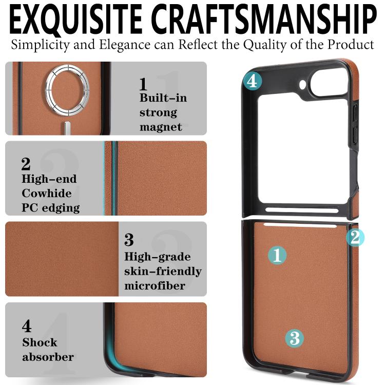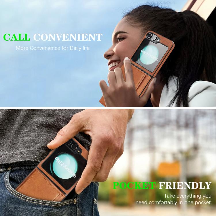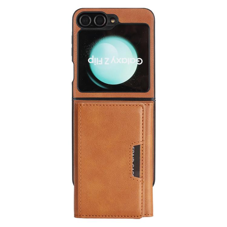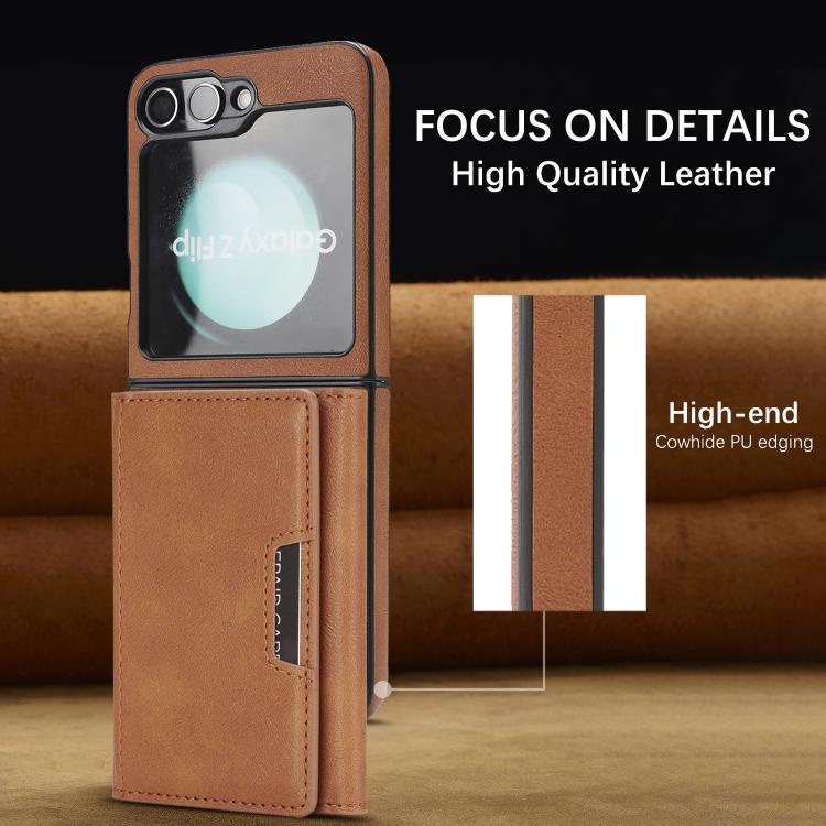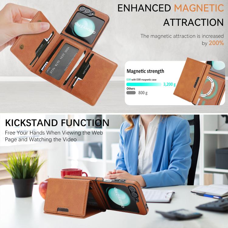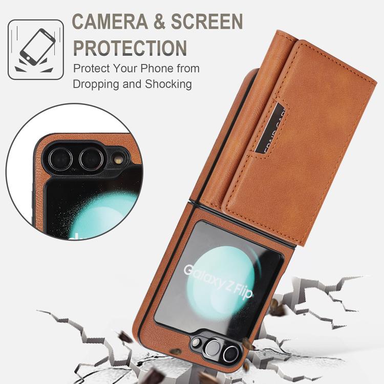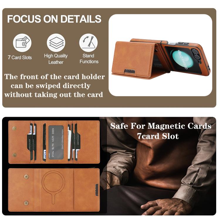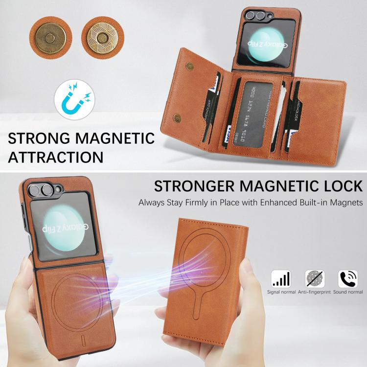 For Samsung Galaxy Z Flip7 FE / Flip6 Kalebol Strong Magnetic MagSafe Tri-Fold Wallet Side Sticker Leather Phone Case(Brown)