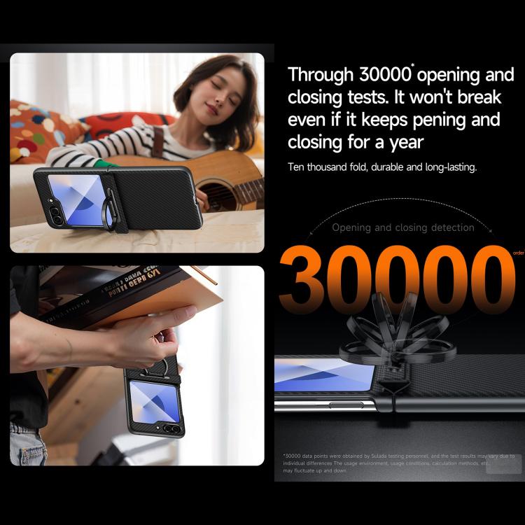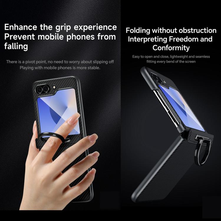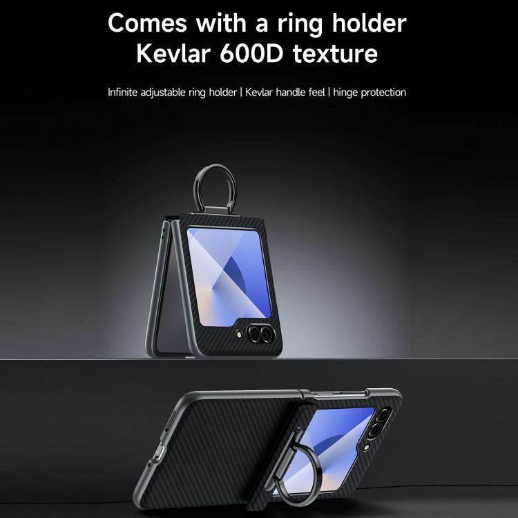 For Samsung Galaxy Z Flip7 FE / Flip6 SULADA 600D Kevlar Texture PC Shockproof Phone Case with Rng Holder(Black)