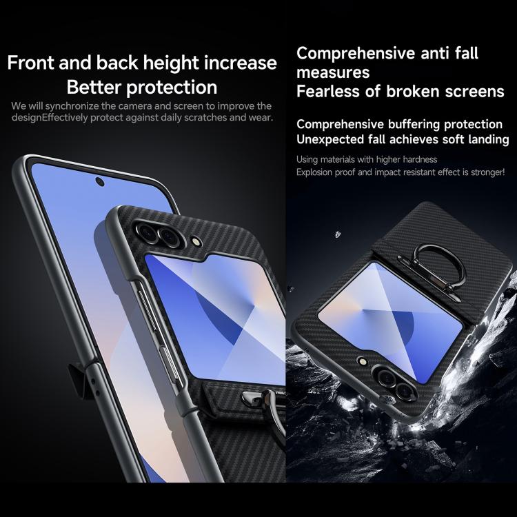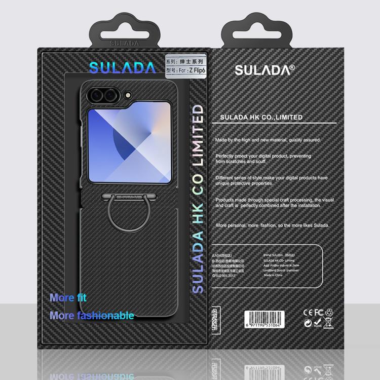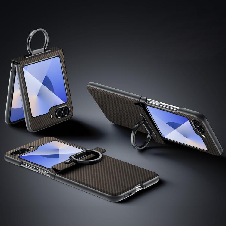 For Samsung Galaxy Z Flip7 FE / Flip6 SULADA 600D Kevlar Texture PC Shockproof Phone Case with Rng Holder(Brown)