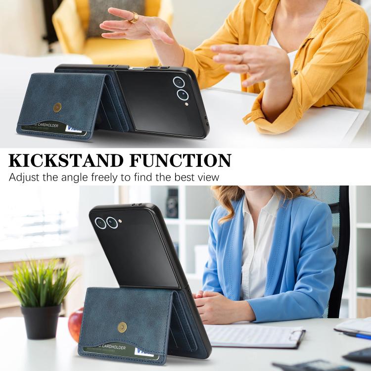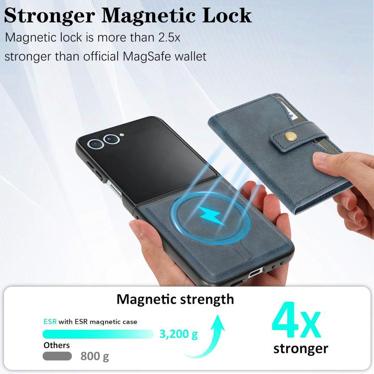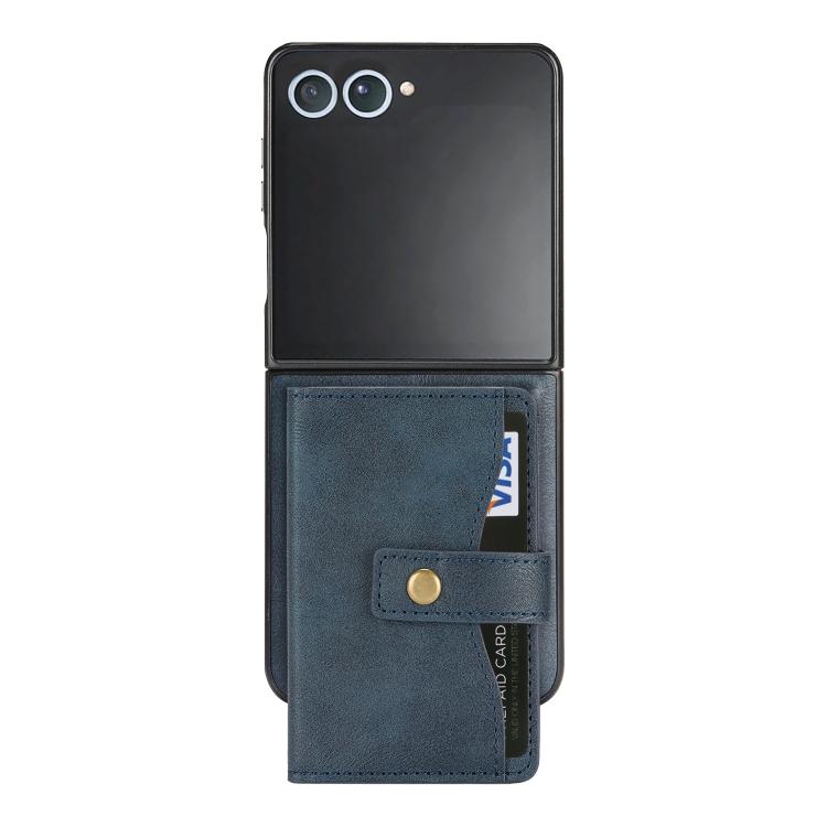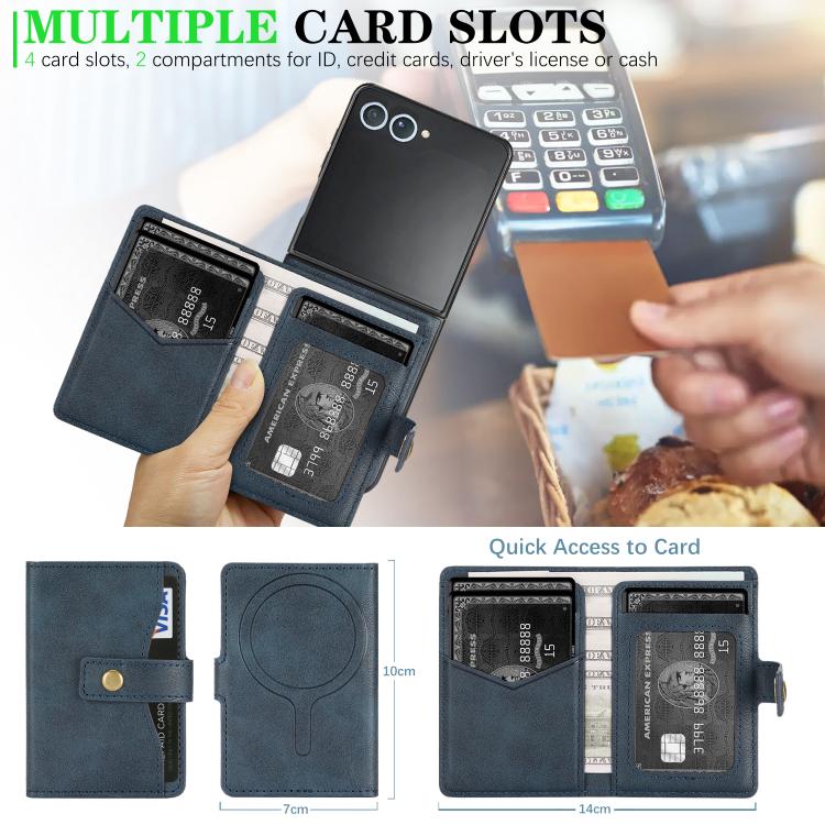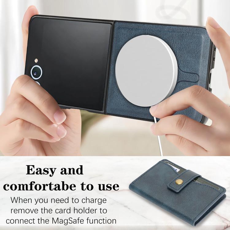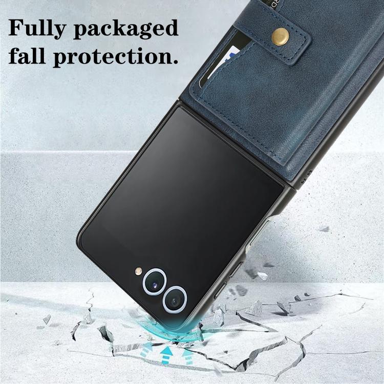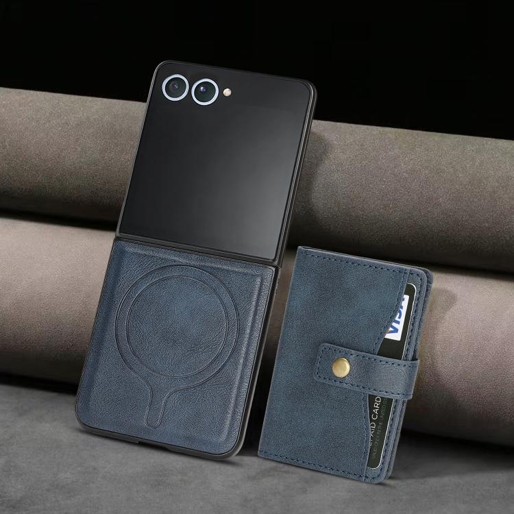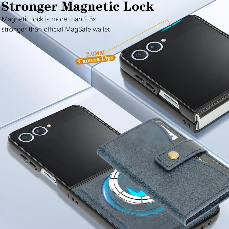 For Samsung Galaxy Z Flip7 Kalebol Magnetic Button Card Bag MagSafe Ring Leather Phone Case(Blue)