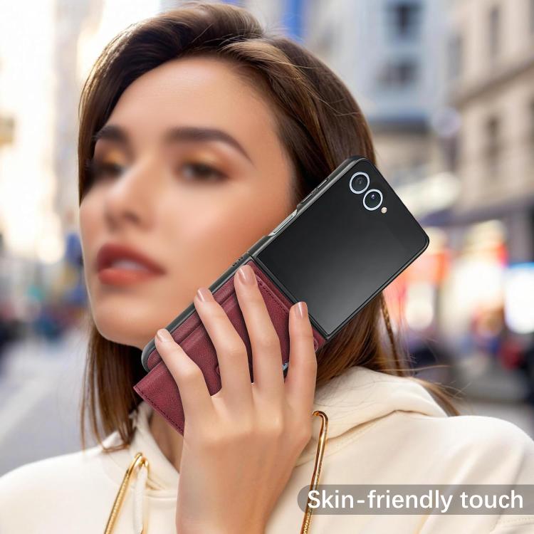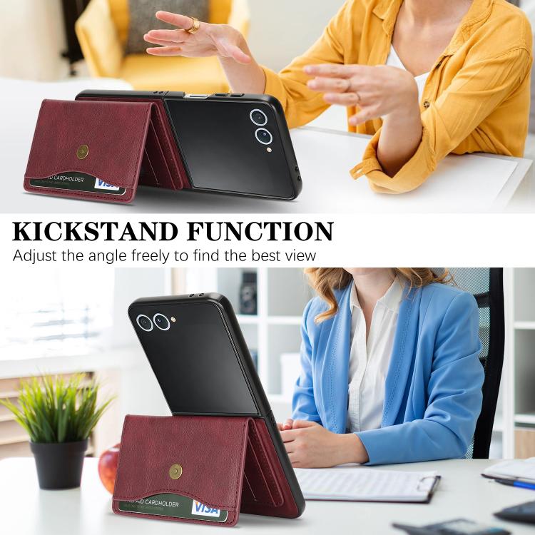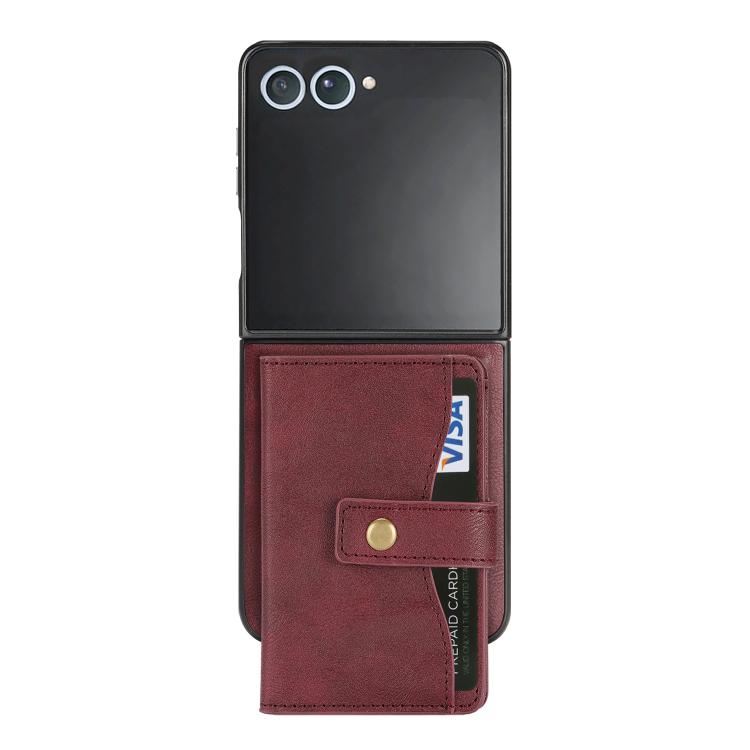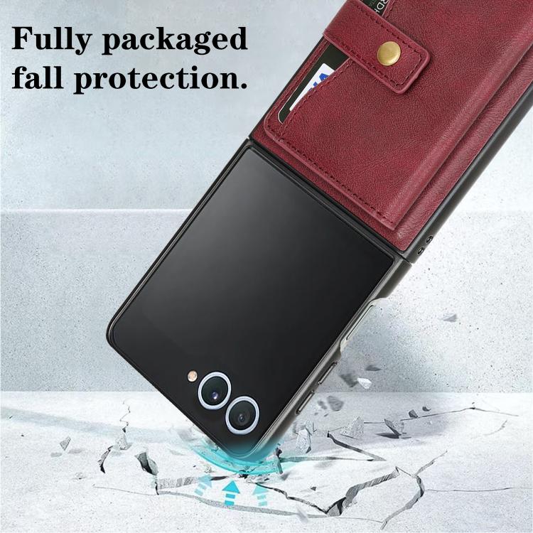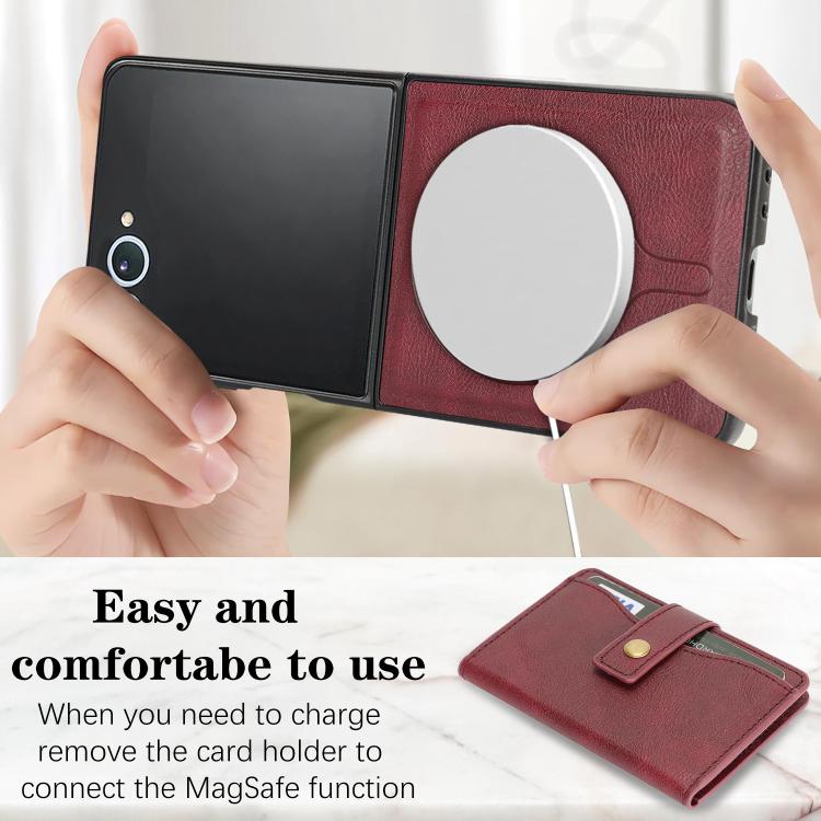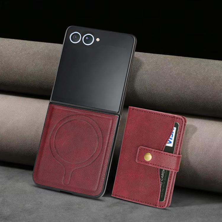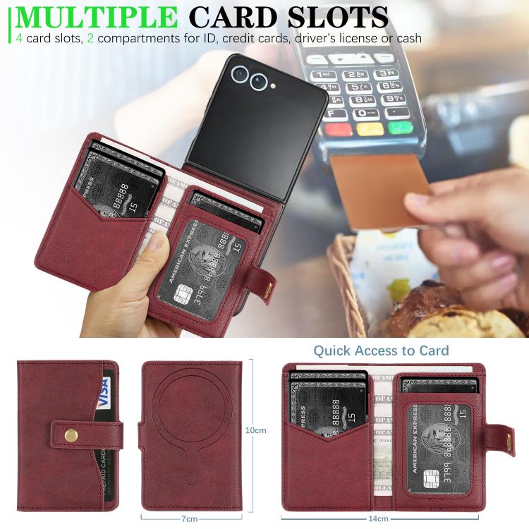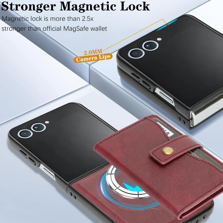 For Samsung Galaxy Z Flip7 Kalebol Magnetic Button Card Bag MagSafe Ring Leather Phone Case(Red)