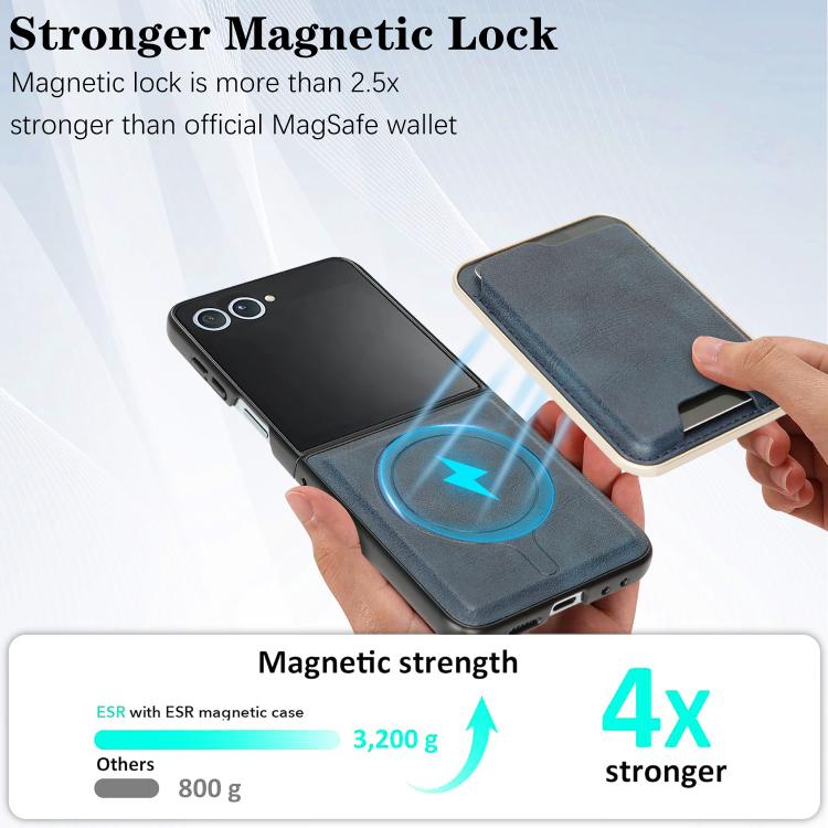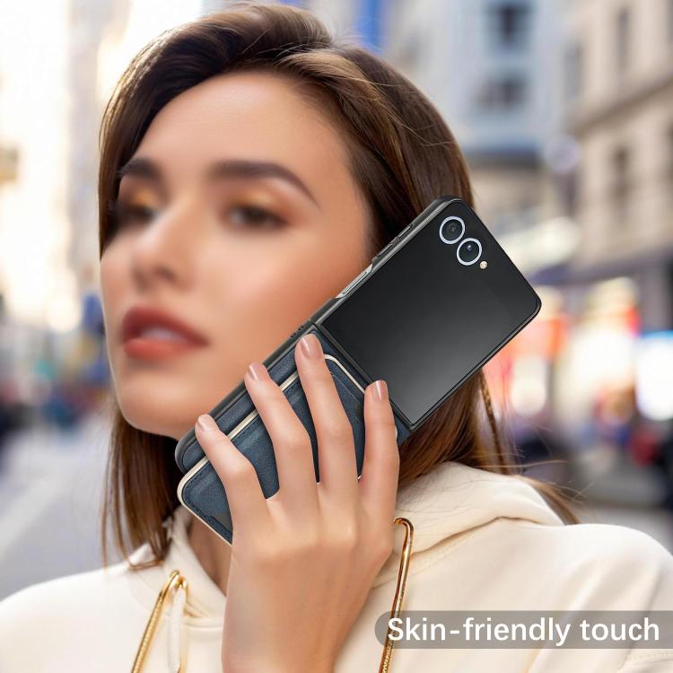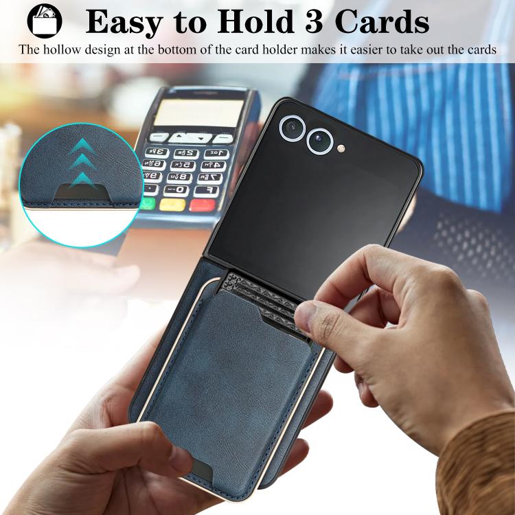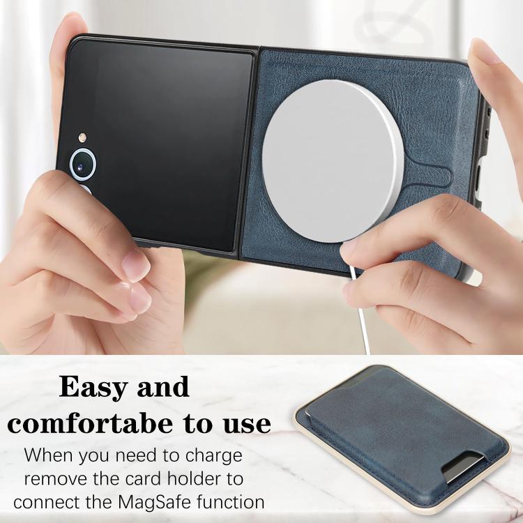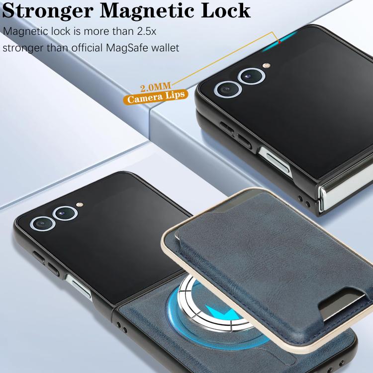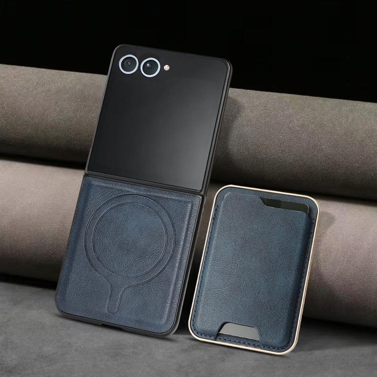 For Samsung Galaxy Z Flip7 Kalebol Slim MagSafe Ring Magnetic Card Bag Leather Phone Case(Blue)