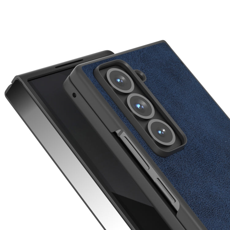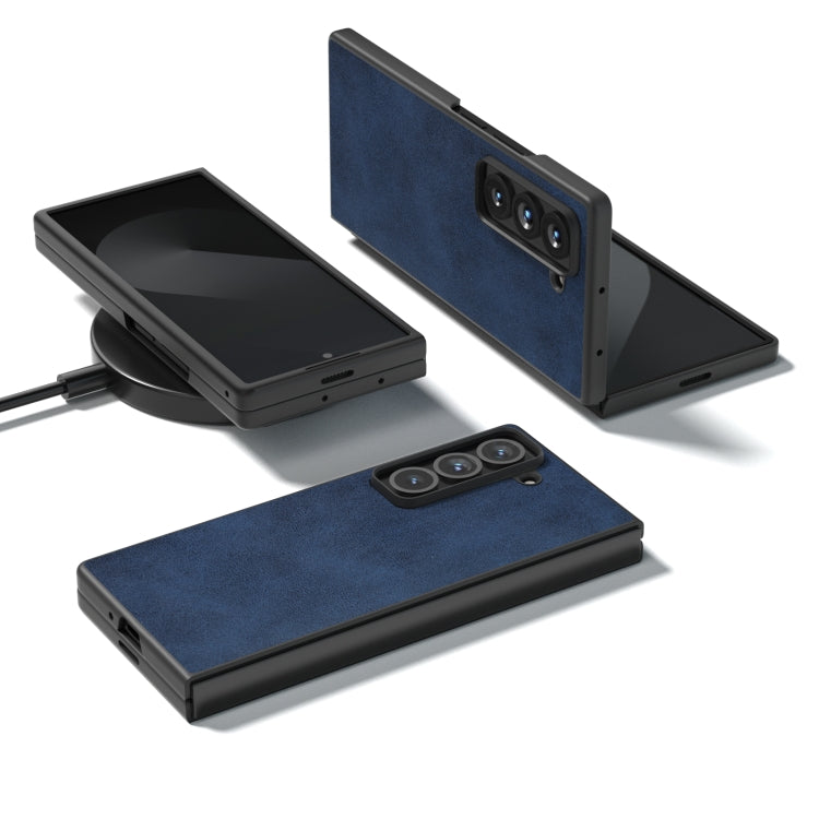 For Samsung Galaxy Z Fold Special Black Edge Two-color Calf Texture PU Phone Case(Blue)