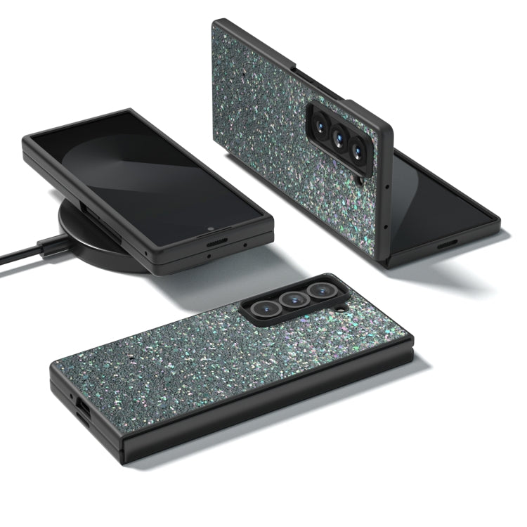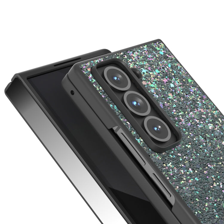 For Samsung Galaxy Z Fold Special Black Frame Colorful Glitter Phone Case(Black Green)