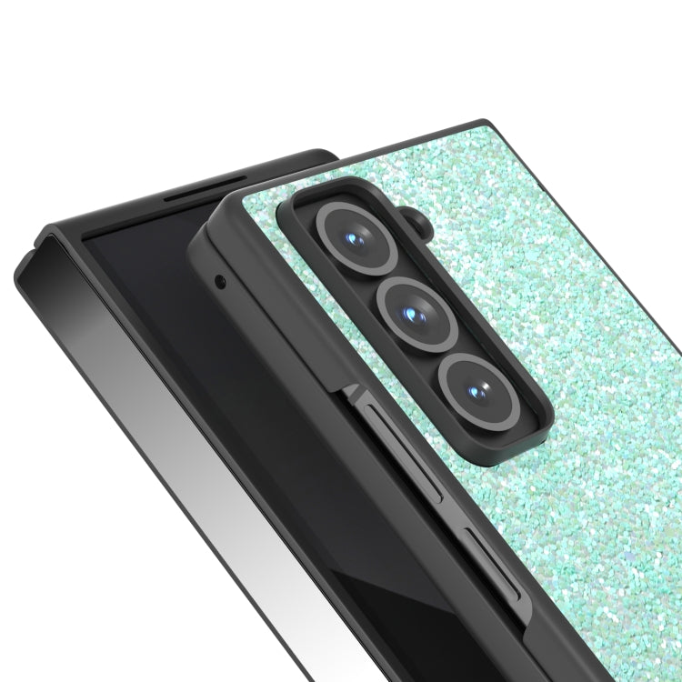 For Samsung Galaxy Z Fold Special Black Frame Colorful Glitter Phone Case(Light Green)