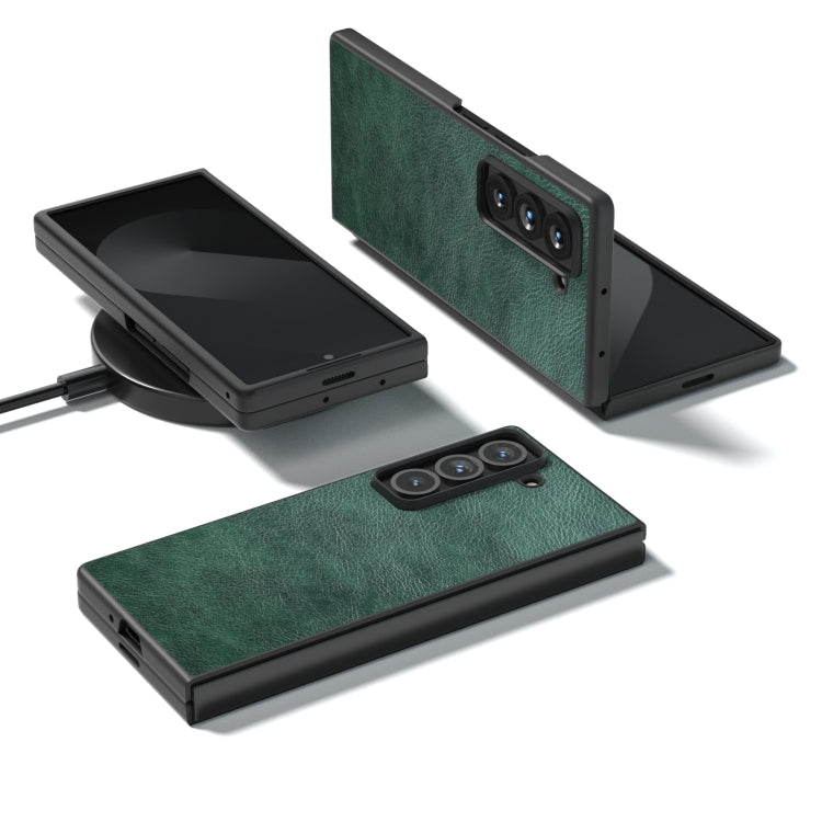 For Samsung Galaxy Z Fold Special Dual Color Lichi Texture PU Phone Case(Green)