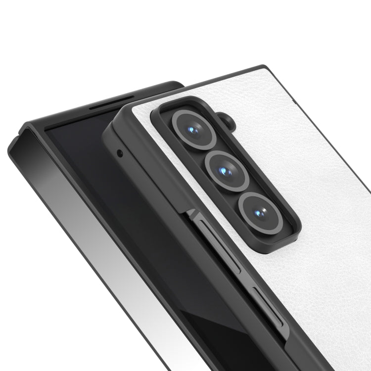 For Samsung Galaxy Z Fold Special Dual Color Lichi Texture PU Phone Case(White)