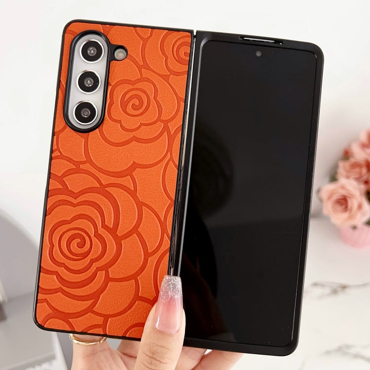 For Samsung Galaxy Z Fold Special Impression Flower Pattern Protective Phone Case(Orange)