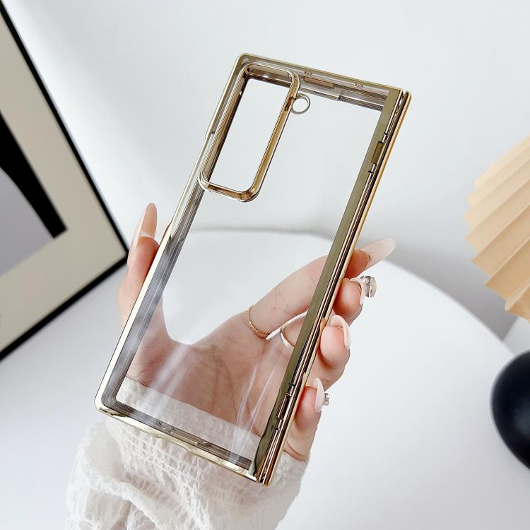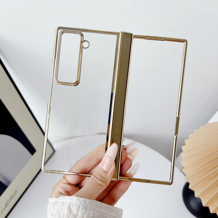 For Samsung Galaxy Z Fold Special Plating Spring Axis Skin Feel Phone Case(Gold)