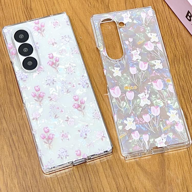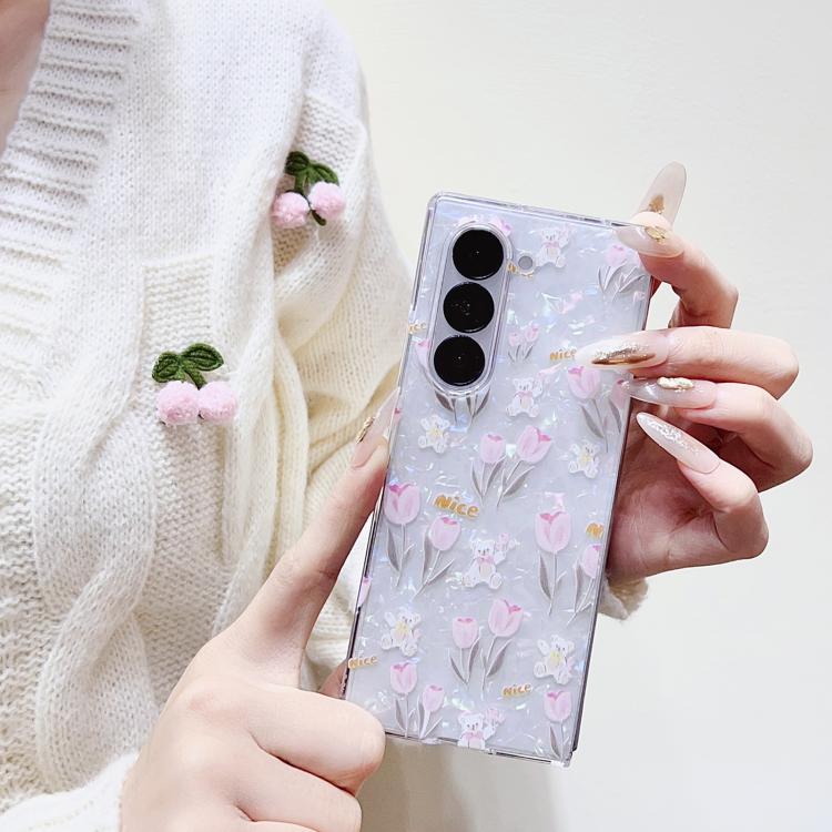 For Samsung Galaxy Z Fold Special Shell Texture Flower Pattern Protective Phone Case(Tulip)