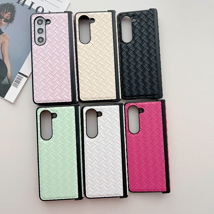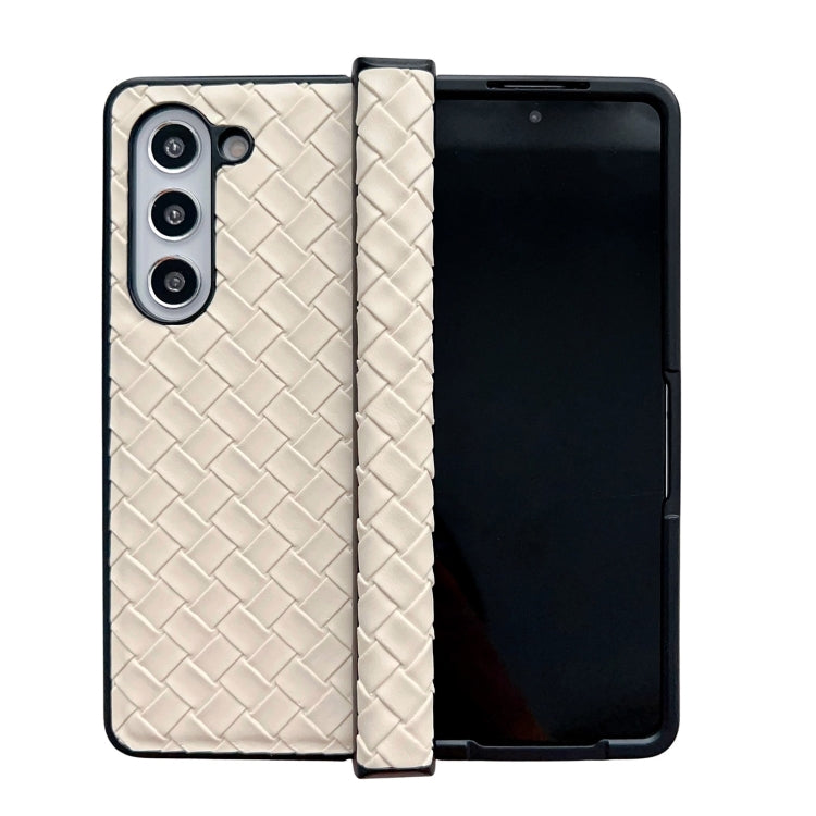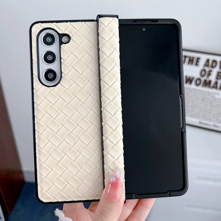 For Samsung Galaxy Z Fold Special Three-piece Set Woven Texture Folding PU Phone Case(Gold)