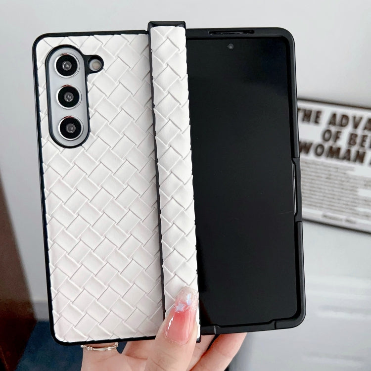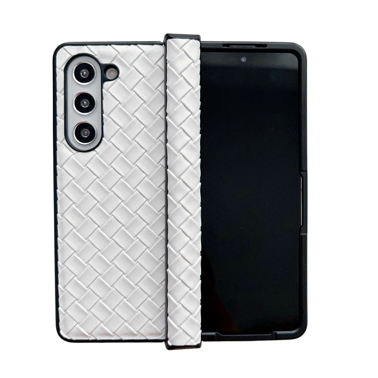 For Samsung Galaxy Z Fold Special Three-piece Set Woven Texture Folding PU Phone Case(White)