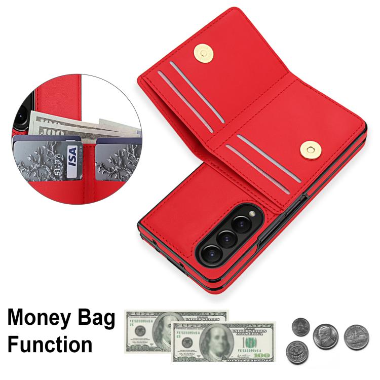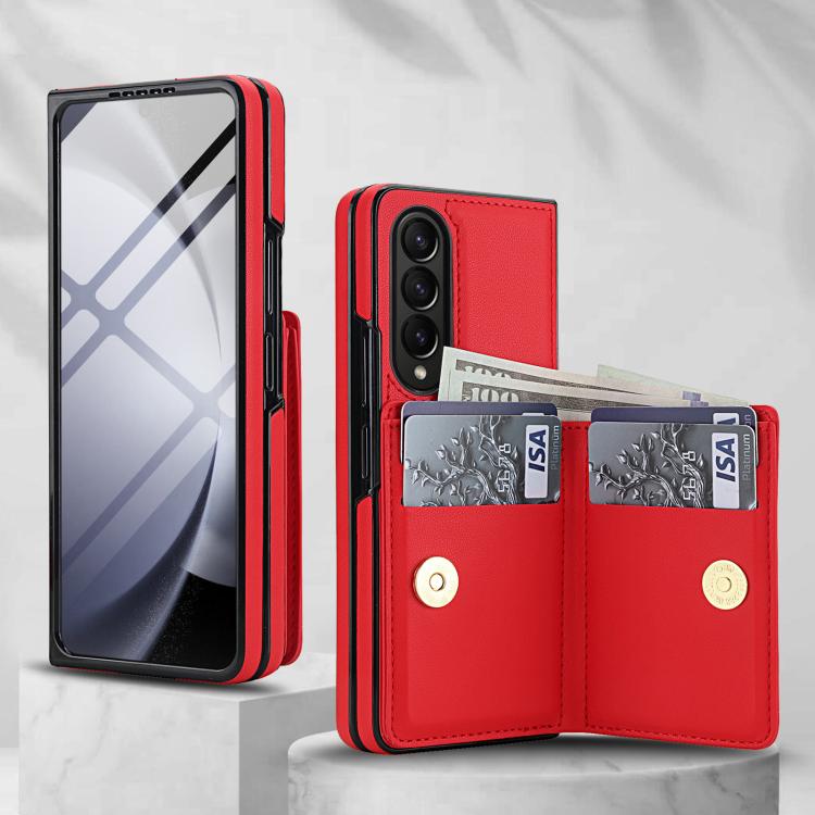 For Samsung Galaxy Z Fold3 5G Integrated Flip Cover Card Slot Holder Leather Phone Case with Ring(Red)