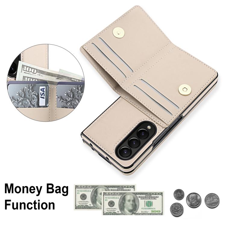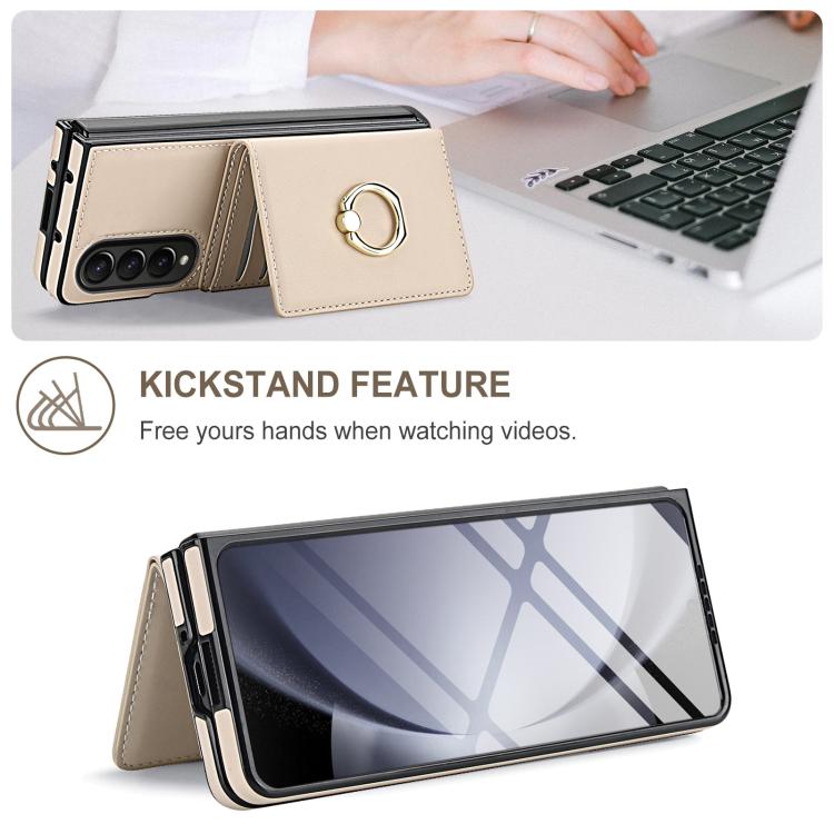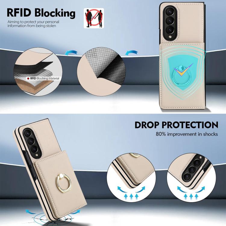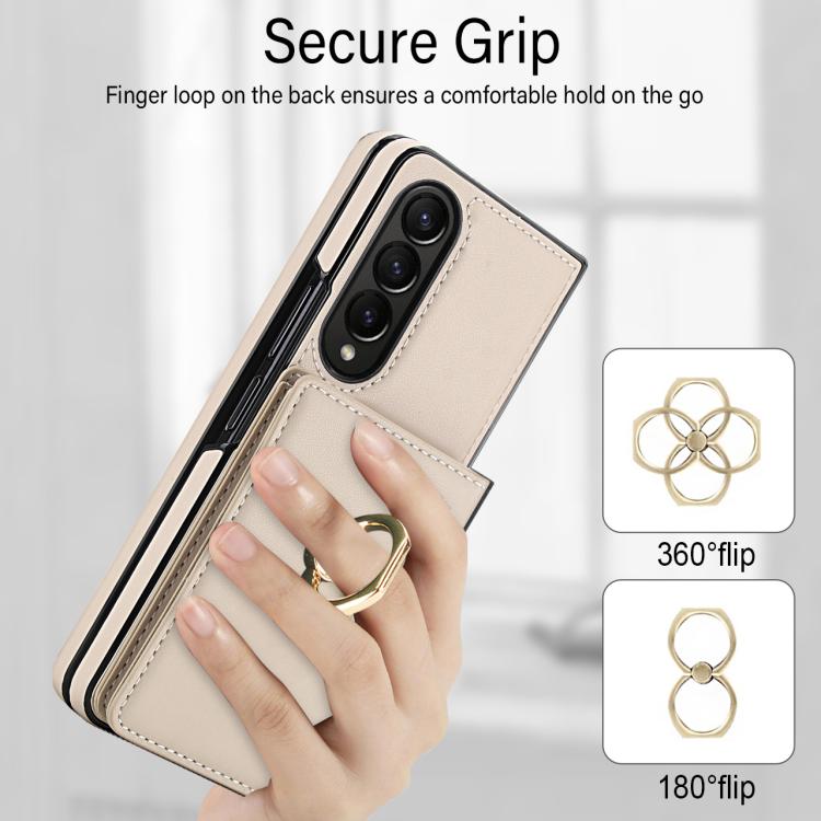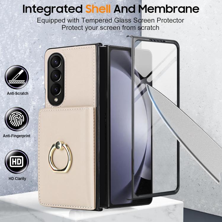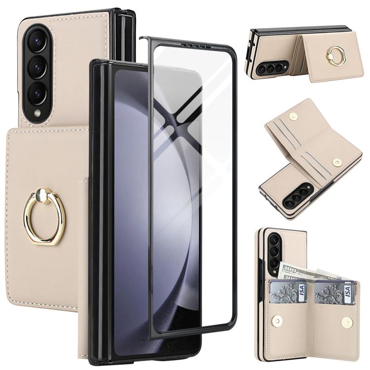 For Samsung Galaxy Z Fold3 5G Integrated Flip Cover Card Slot Holder Leather Phone Case with Ring(White)