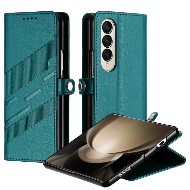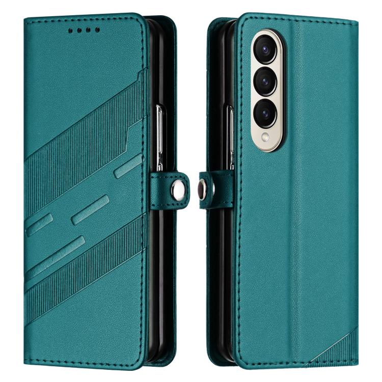 For Samsung Galaxy Z Fold4 5G Embossed Multi-functional Wallet Retro Leather Phone Case(Dark Green)