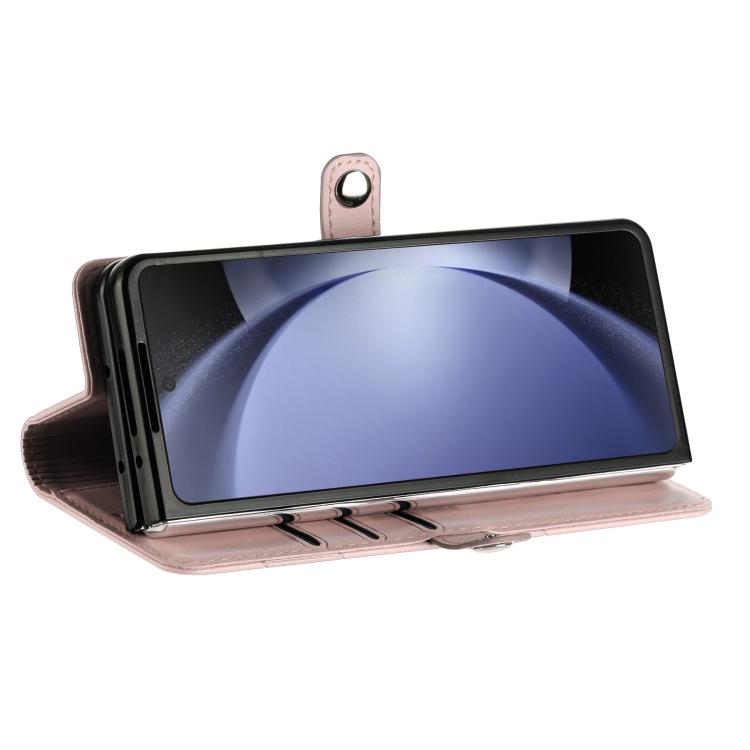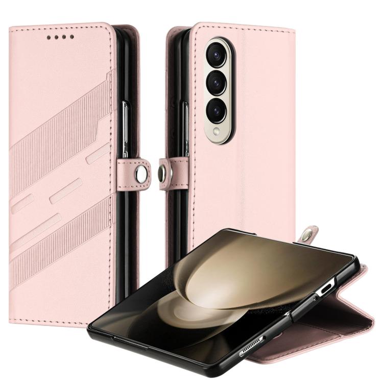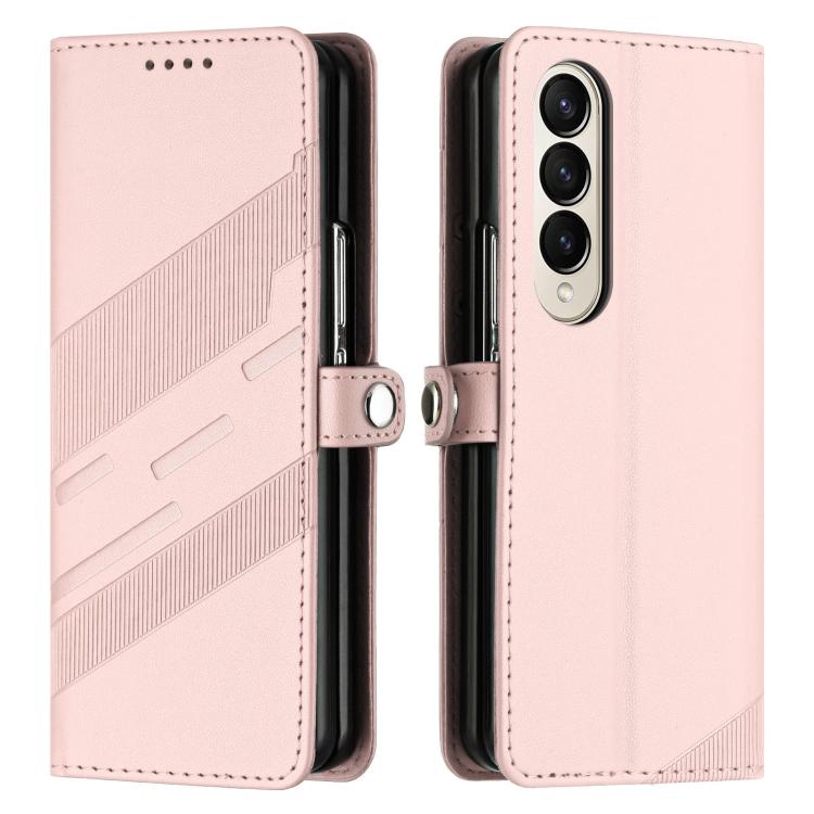 For Samsung Galaxy Z Fold4 5G Embossed Multi-functional Wallet Retro Leather Phone Case(Pink)