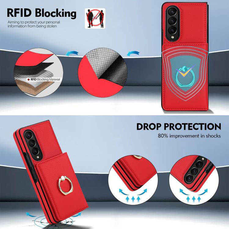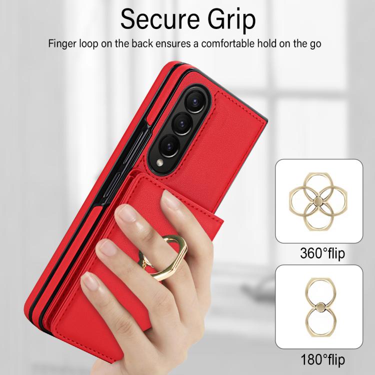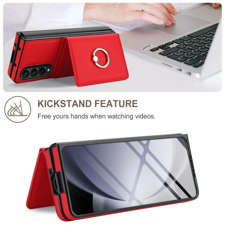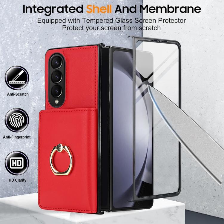 For Samsung Galaxy Z Fold4 5G Integrated Flip Cover Card Slot Holder Leather Phone Case with Ring(Red)