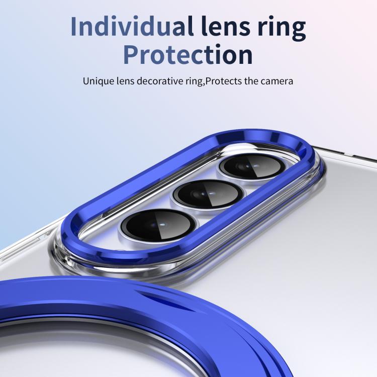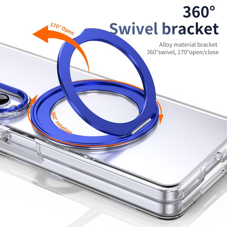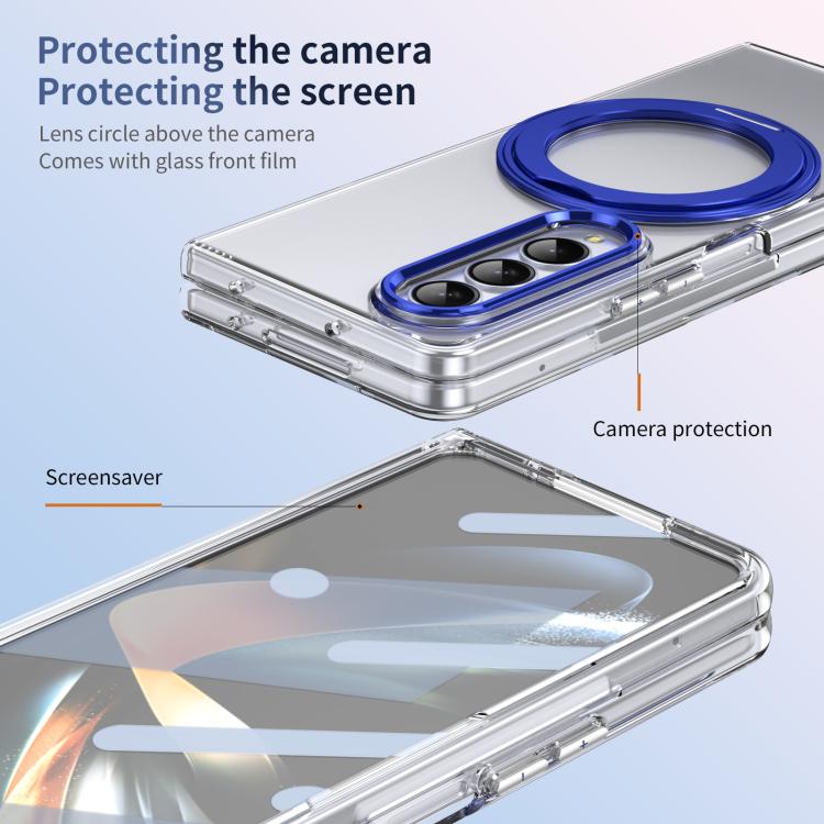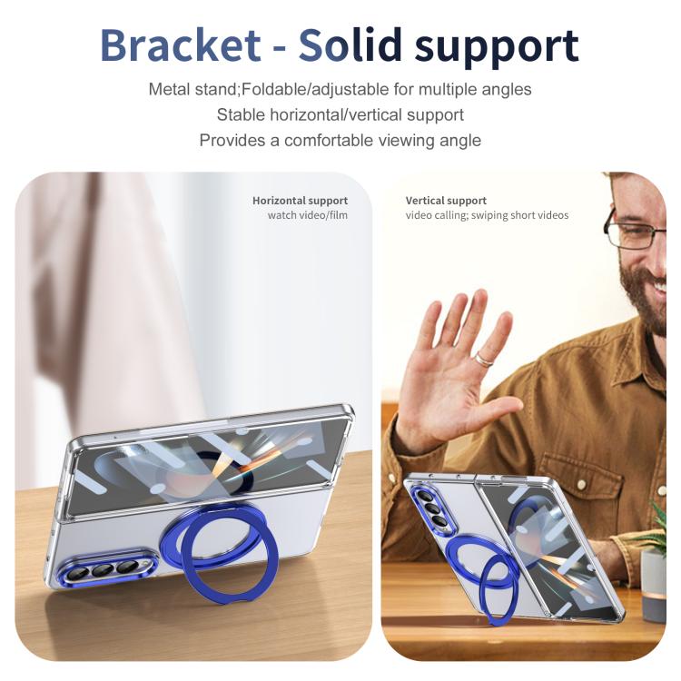 For Samsung Galaxy Z Fold4 5G Integrated Ice-feel High-transparency 360-Degree Rotating Stand MagSafe Folding Phone Case(Blue)