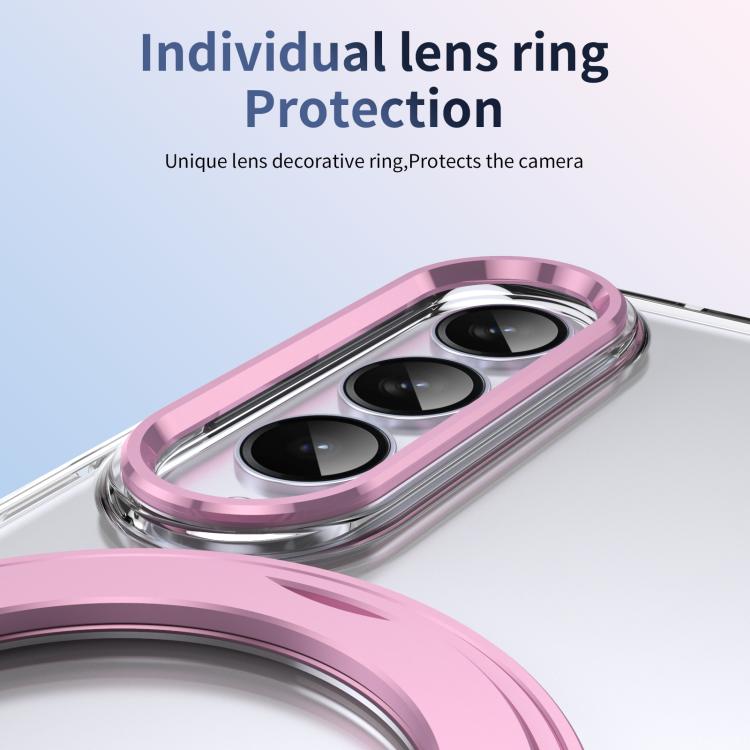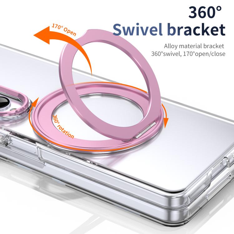 For Samsung Galaxy Z Fold4 5G Integrated Ice-feel High-transparency 360-Degree Rotating Stand MagSafe Folding Phone Case(Pink)