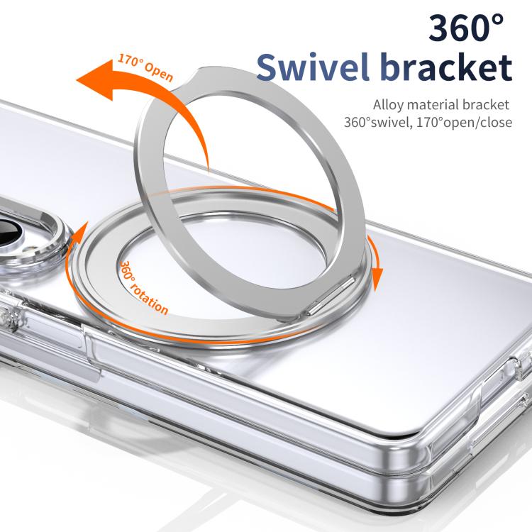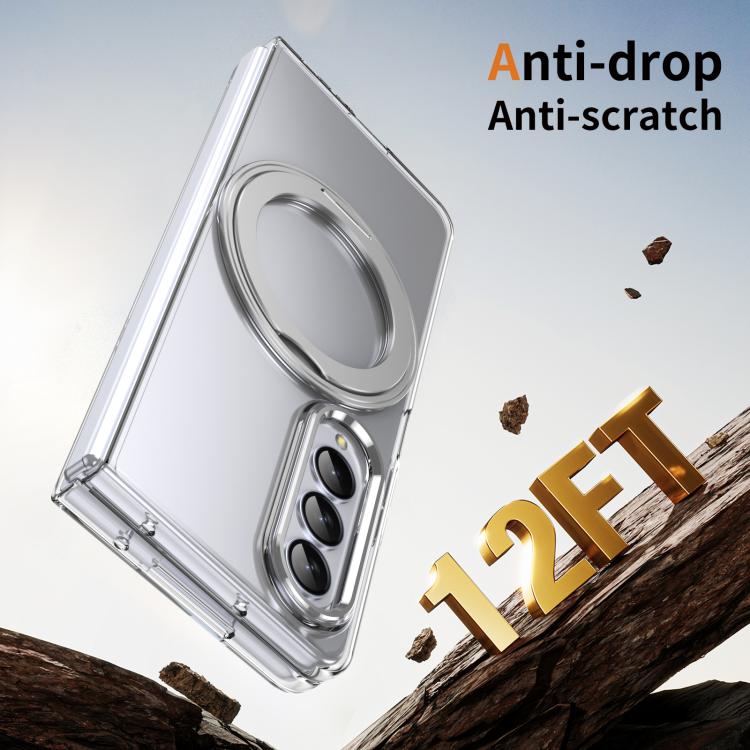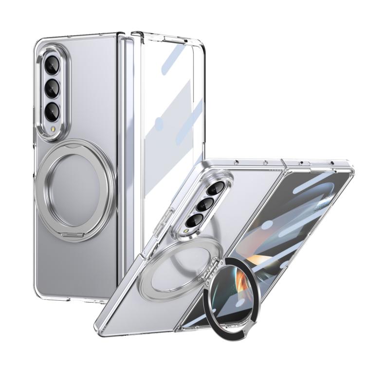 For Samsung Galaxy Z Fold4 5G Integrated Ice-feel High-transparency 360-Degree Rotating Stand MagSafe Folding Phone Case(Silver)
