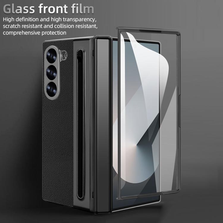 For Samsung Galaxy Z Fold4 5G VIETAO Electroplating Integrated Pen Slot Folding PU Phone Case with Stylus(Black)