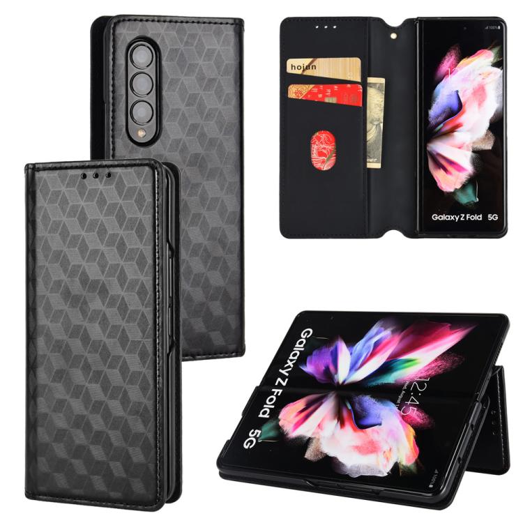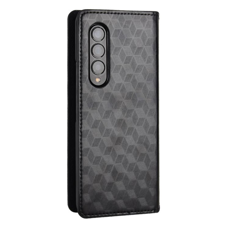 For Samsung Galaxy Z Fold4 Cubic Grid Texture Flip Leather Phone Case(Black)