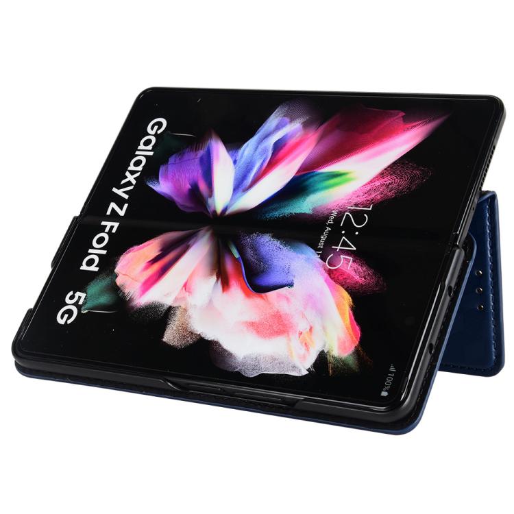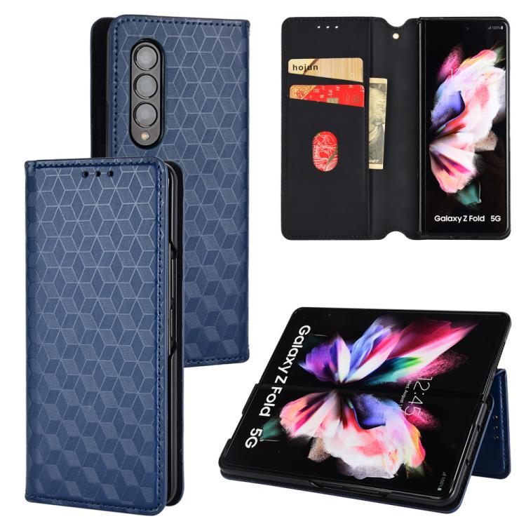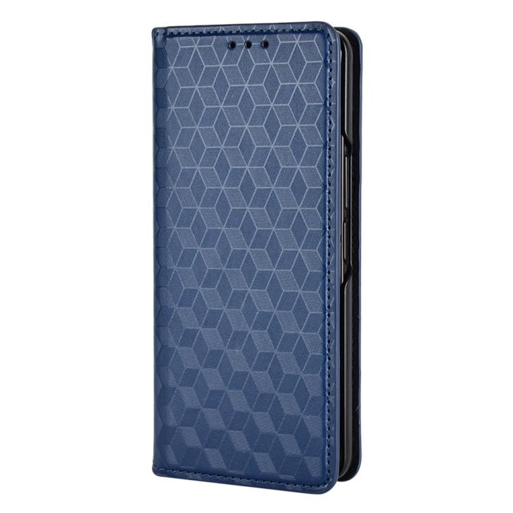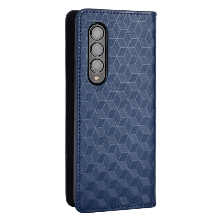 For Samsung Galaxy Z Fold4 Cubic Grid Texture Flip Leather Phone Case(Blue)