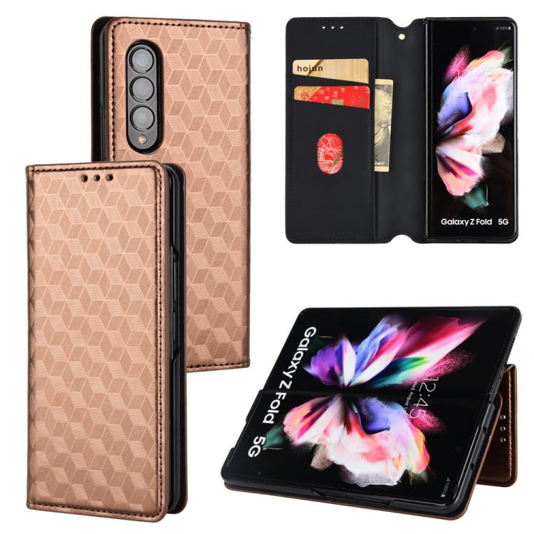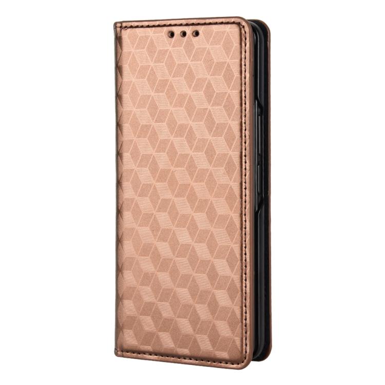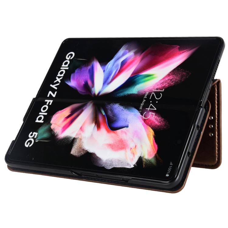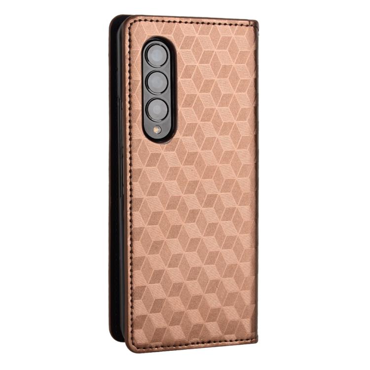 For Samsung Galaxy Z Fold4 Cubic Grid Texture Flip Leather Phone Case(Brown)