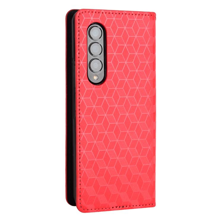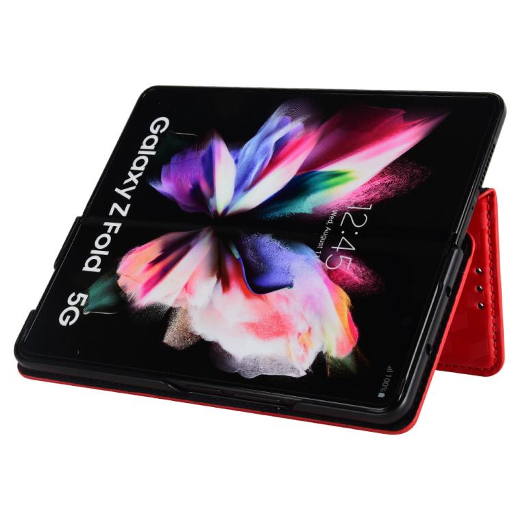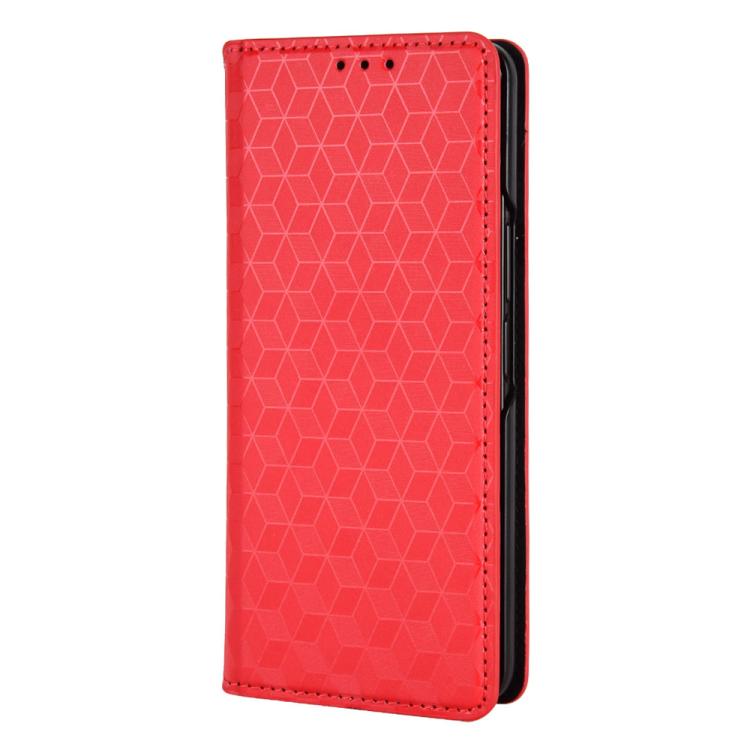For Samsung Galaxy Z Fold4 Cubic Grid Texture Flip Leather Phone Case(Red)