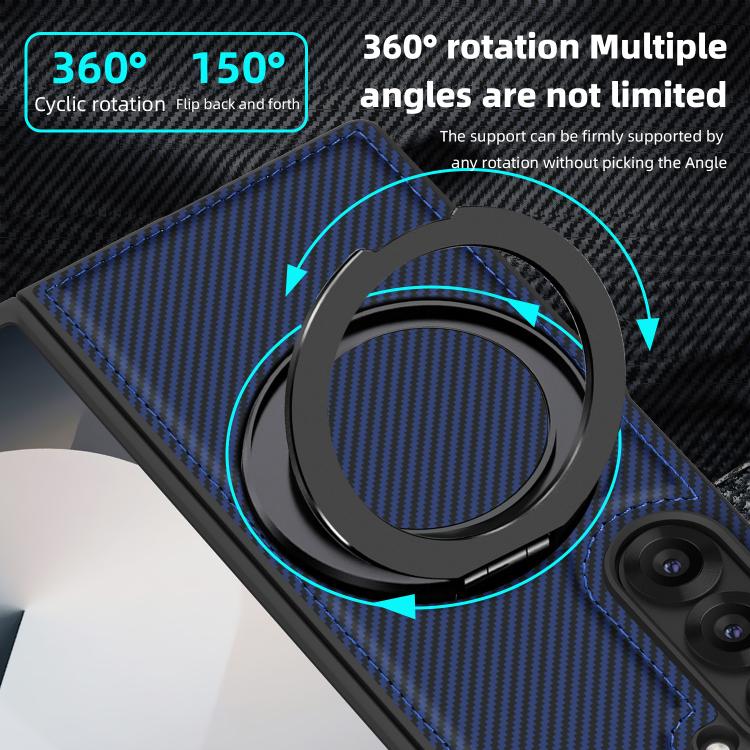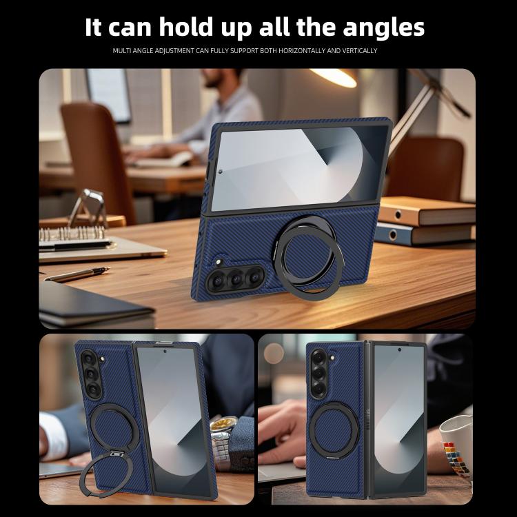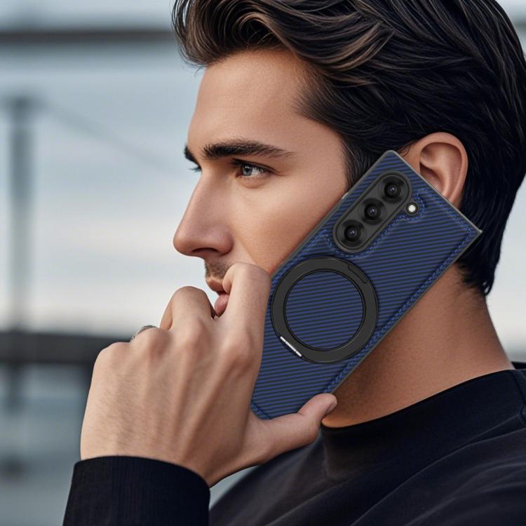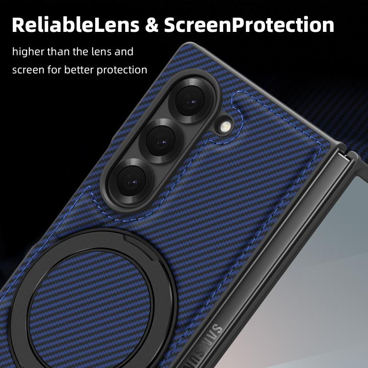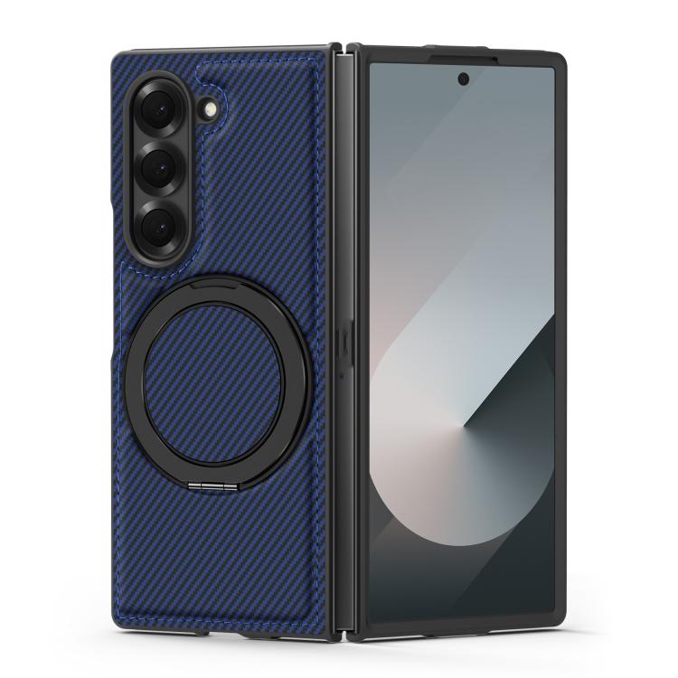 For Samsung Galaxy Z Fold4 Kevlar Carbon Fiber 360 Rotation MagSafe Holder Phone Case(Blue)