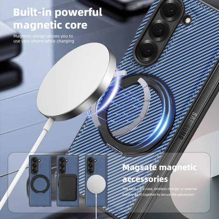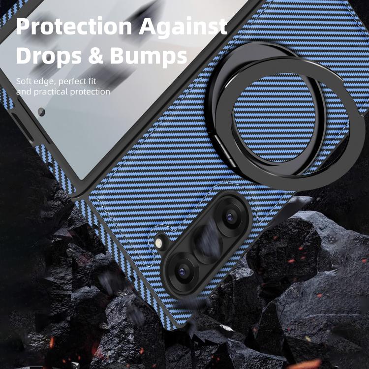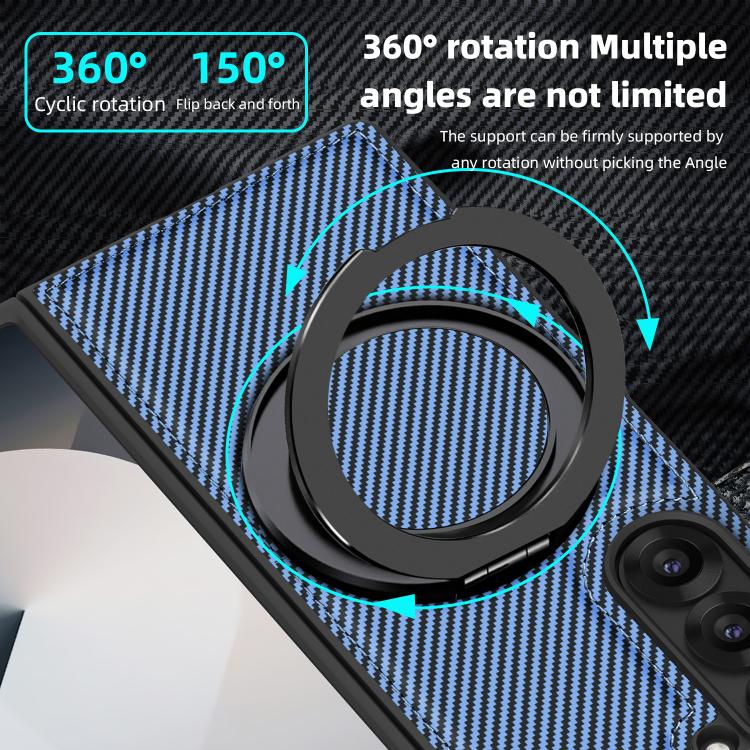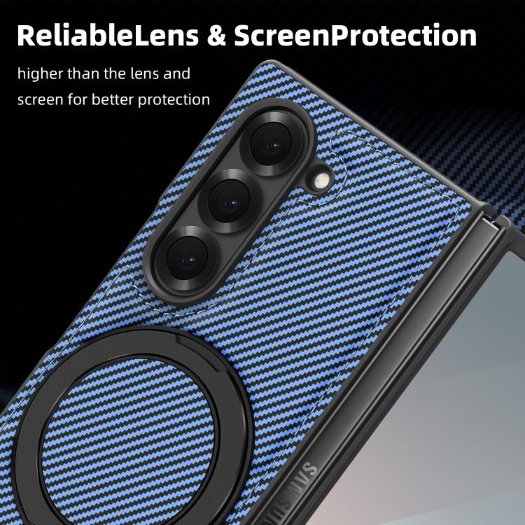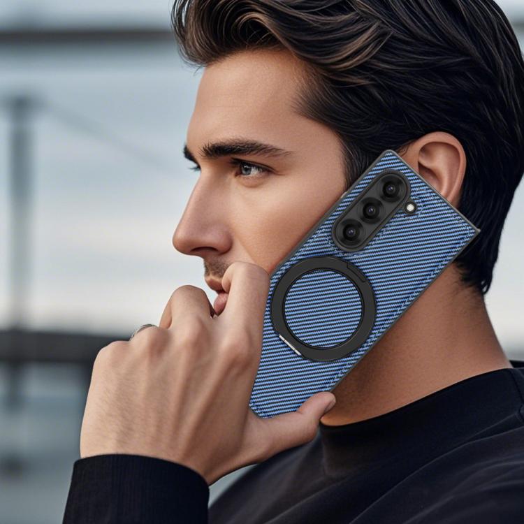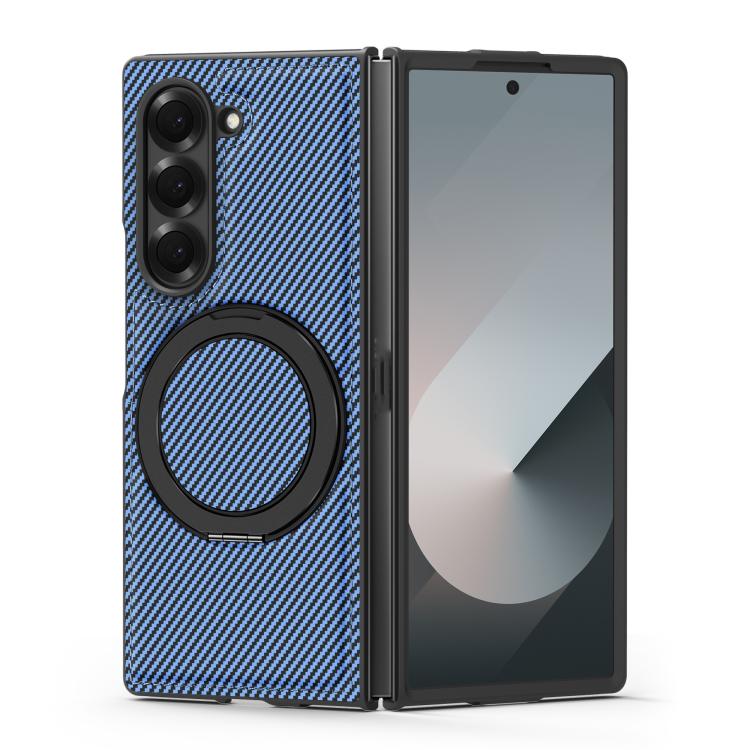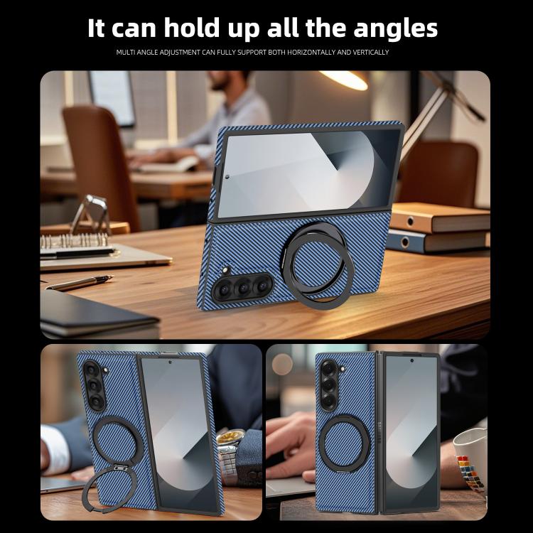 For Samsung Galaxy Z Fold4 Kevlar Carbon Fiber 360 Rotation MagSafe Holder Phone Case(Far Peak blue)