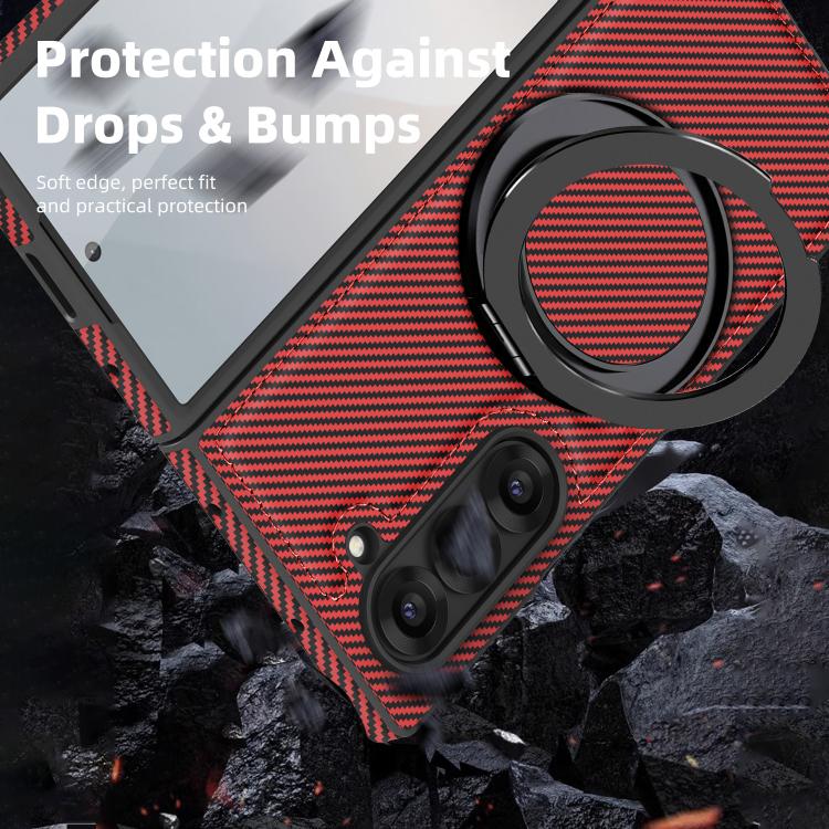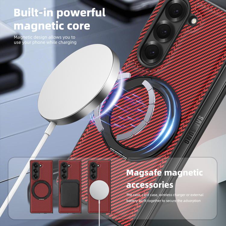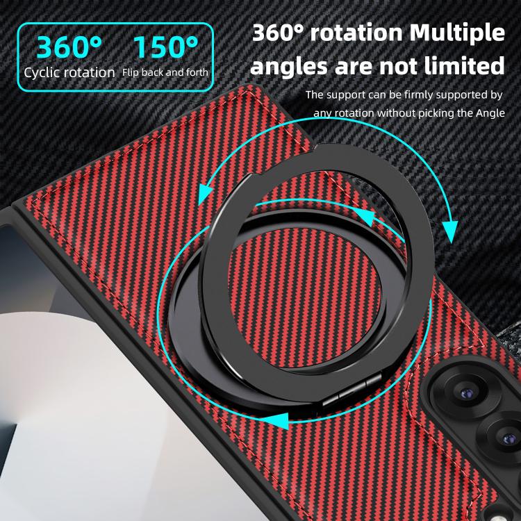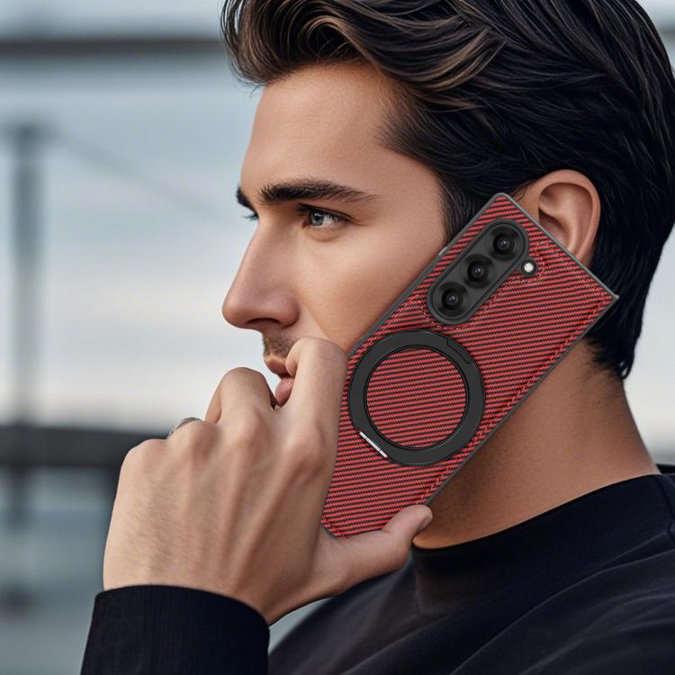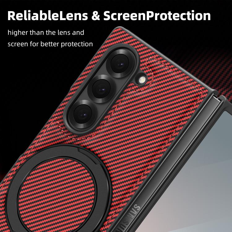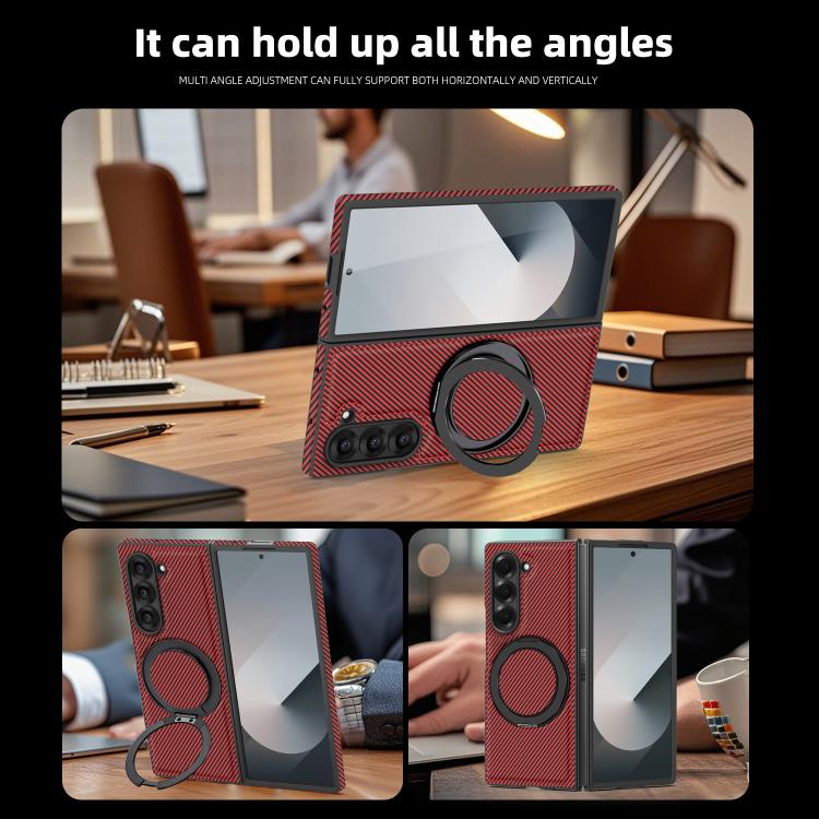 For Samsung Galaxy Z Fold4 Kevlar Carbon Fiber 360 Rotation MagSafe Holder Phone Case(Red)