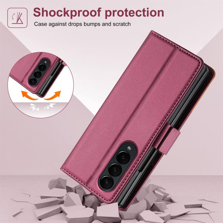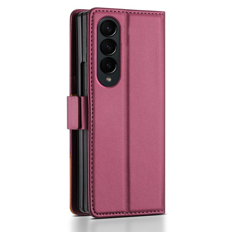 For Samsung Galaxy Z Fold4 N.BEKUS P3 RFID Stitching Magnetic Flip Leather Phone Case(Wine Red)