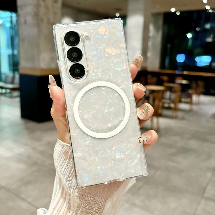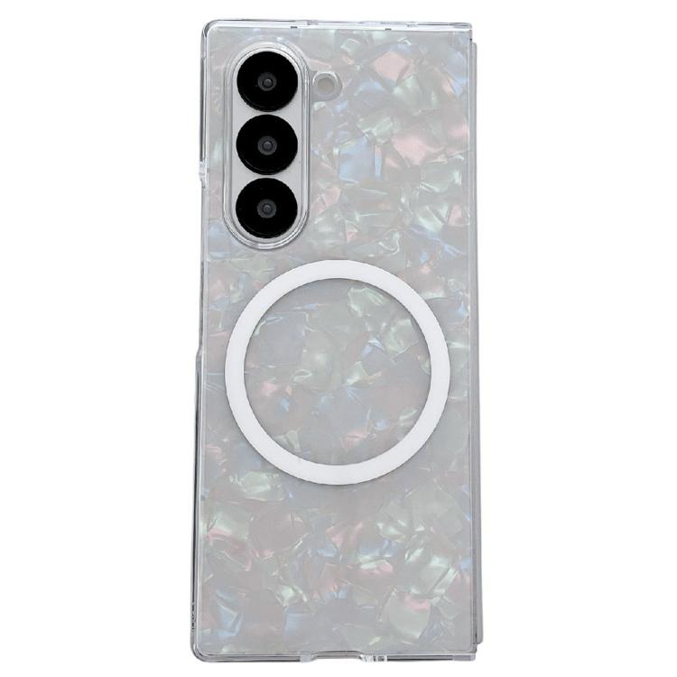 For Samsung Galaxy Z Fold4 Pearlescent Shell Texture MagSafe Phone Case(Beige)