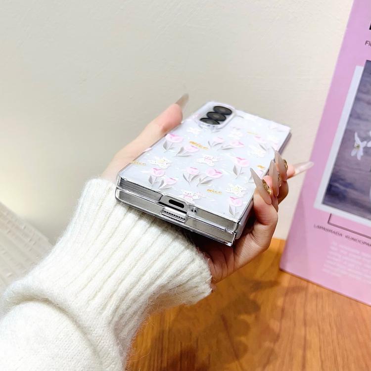 For Samsung Galaxy Z Fold4 Shell Texture Flower Pattern Protective Phone Case(Tulip)