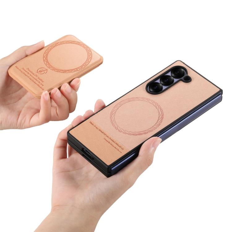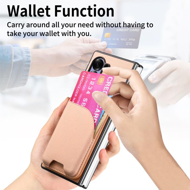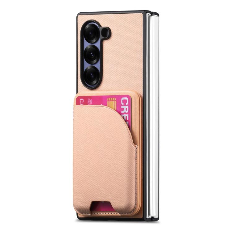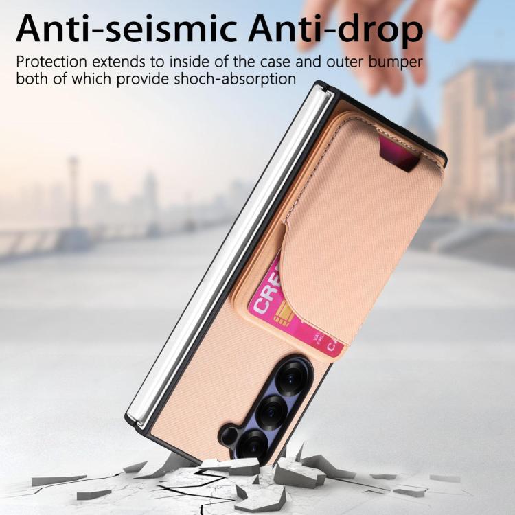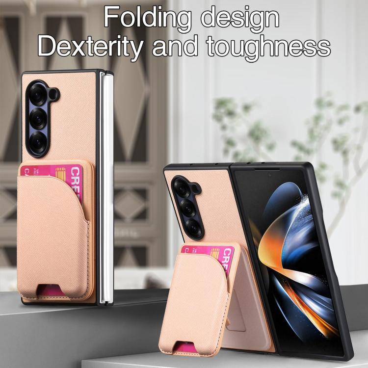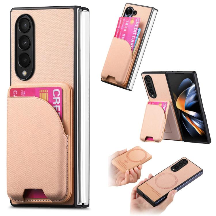 For Samsung Galaxy Z Fold4 Twill Fabric Leather Skin Card Bag Magnetic Back Phone Case(Pink)