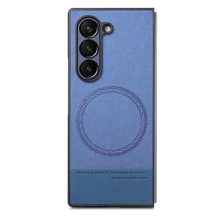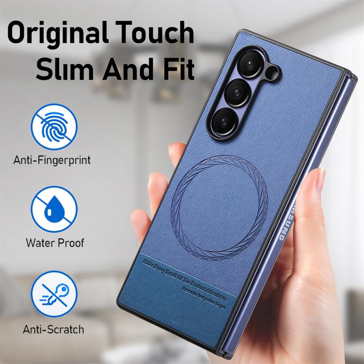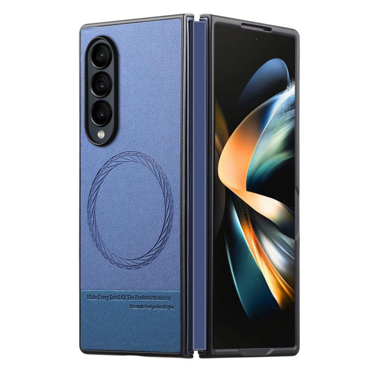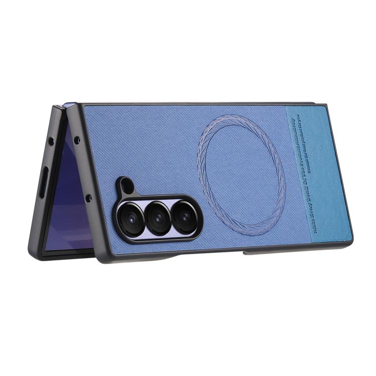 For Samsung Galaxy Z Fold4 Twill Fabric Leather Skin Magnetic Back Phone Case(Blue)