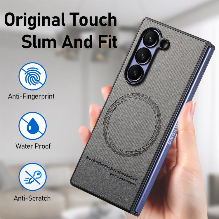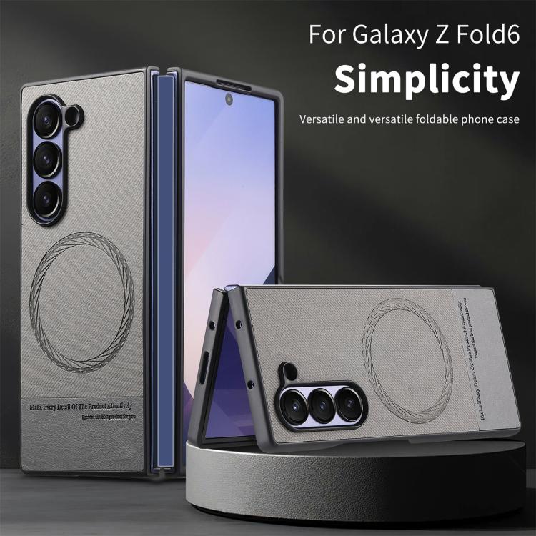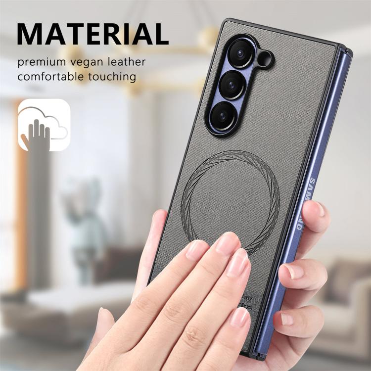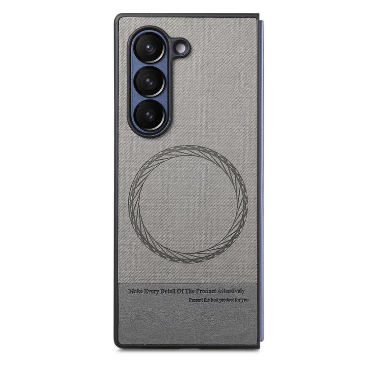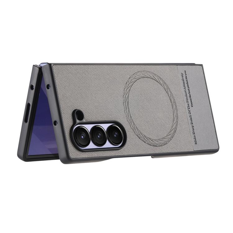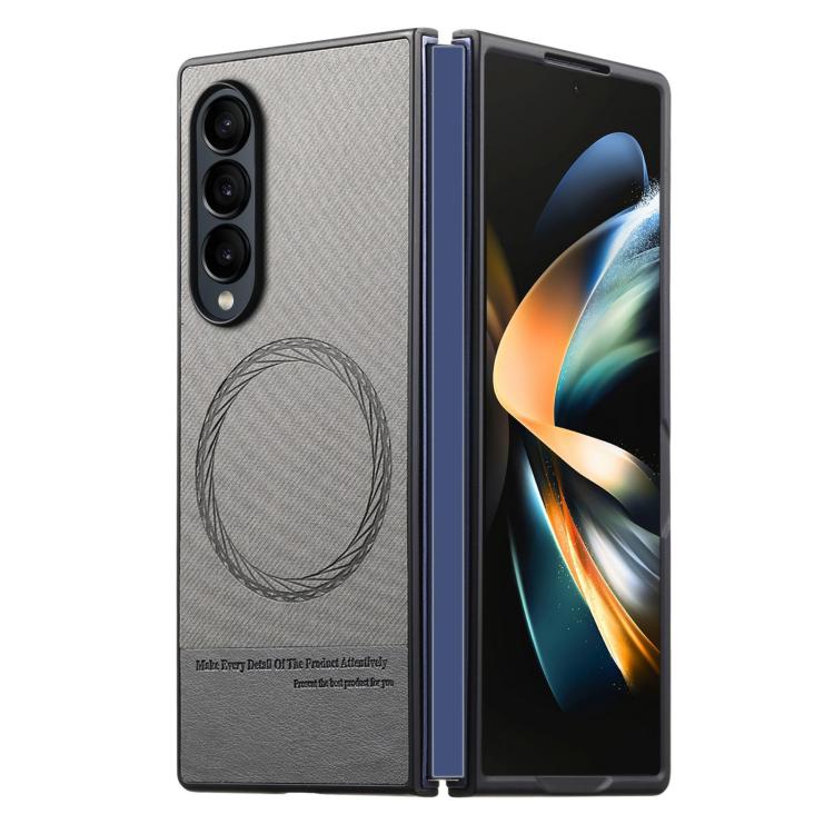 For Samsung Galaxy Z Fold4 Twill Fabric Leather Skin Magnetic Back Phone Case(Gray)