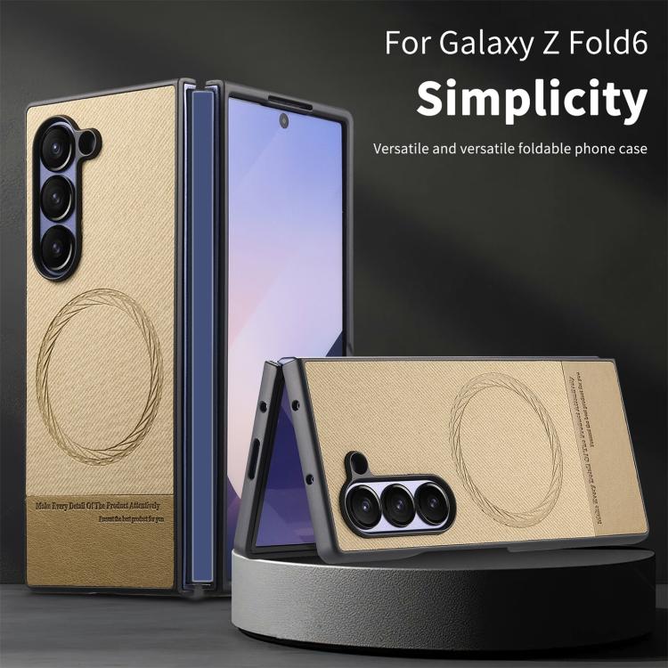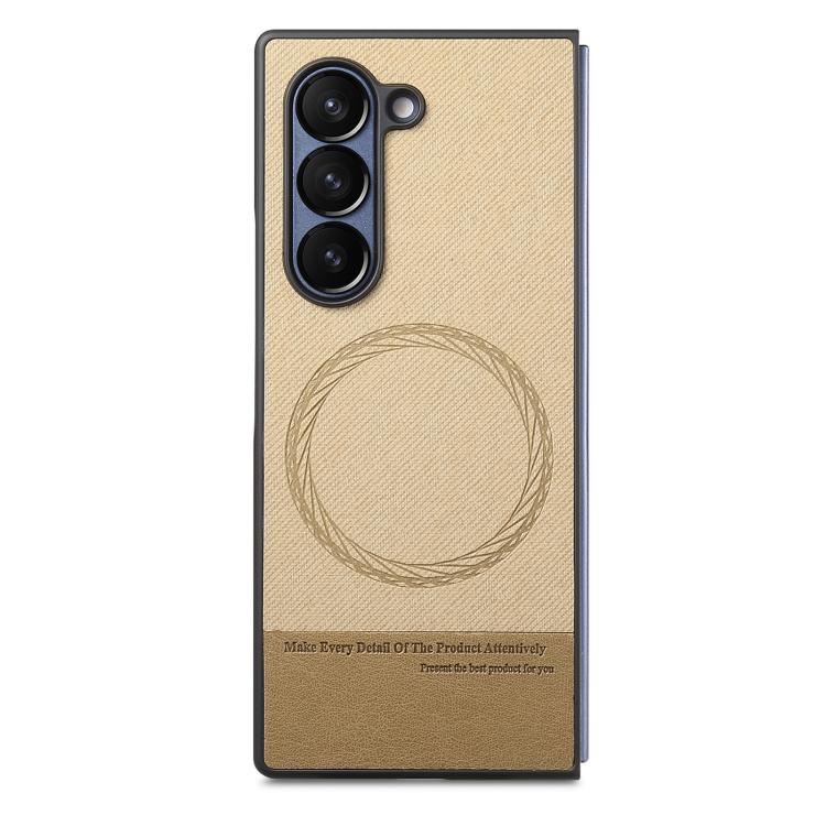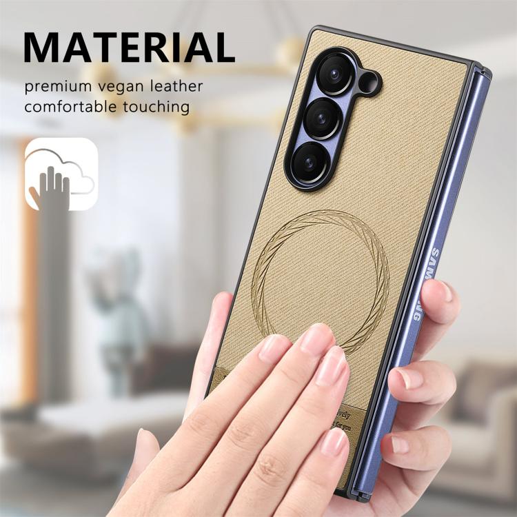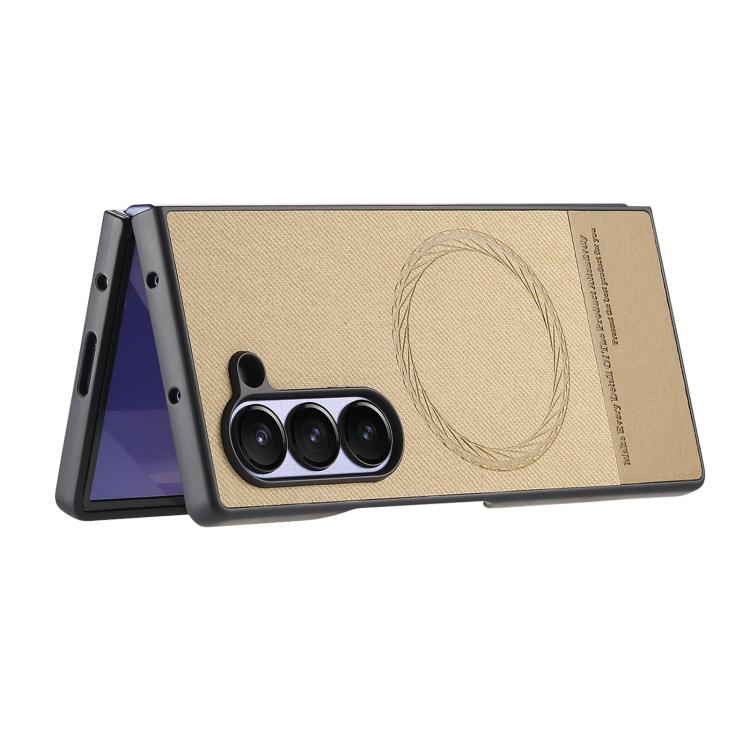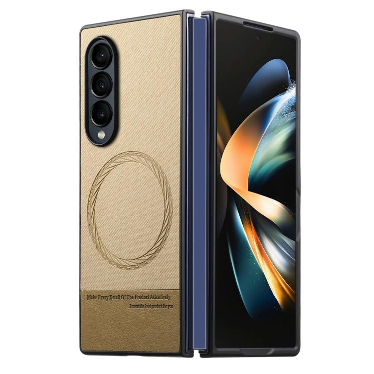 For Samsung Galaxy Z Fold4 Twill Fabric Leather Skin Magnetic Back Phone Case(Khaki)