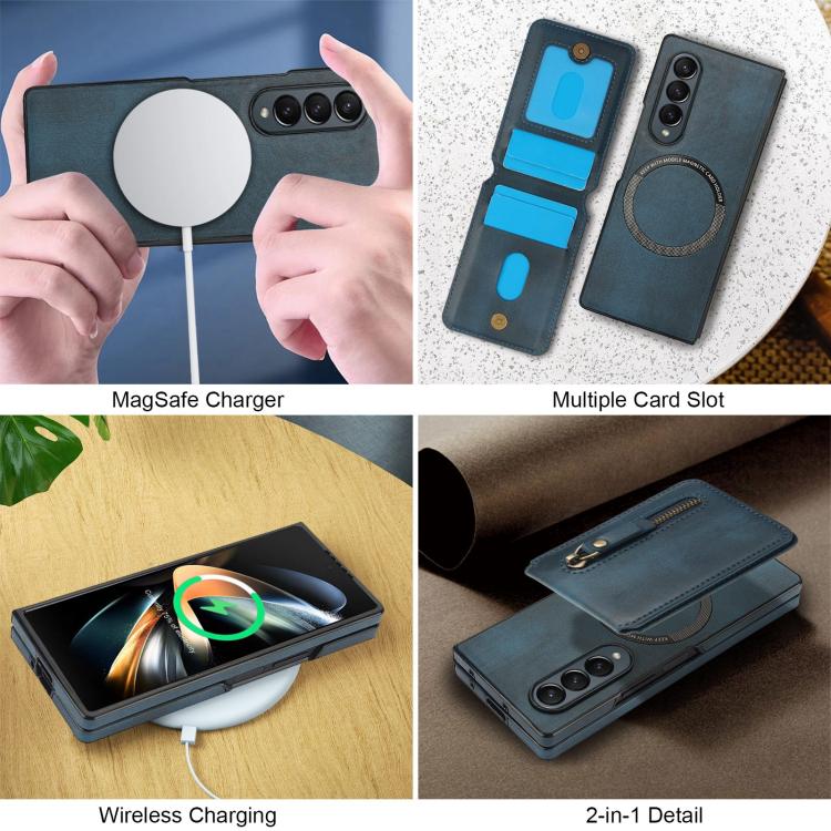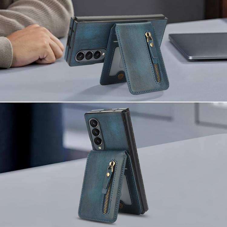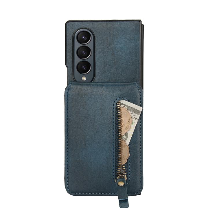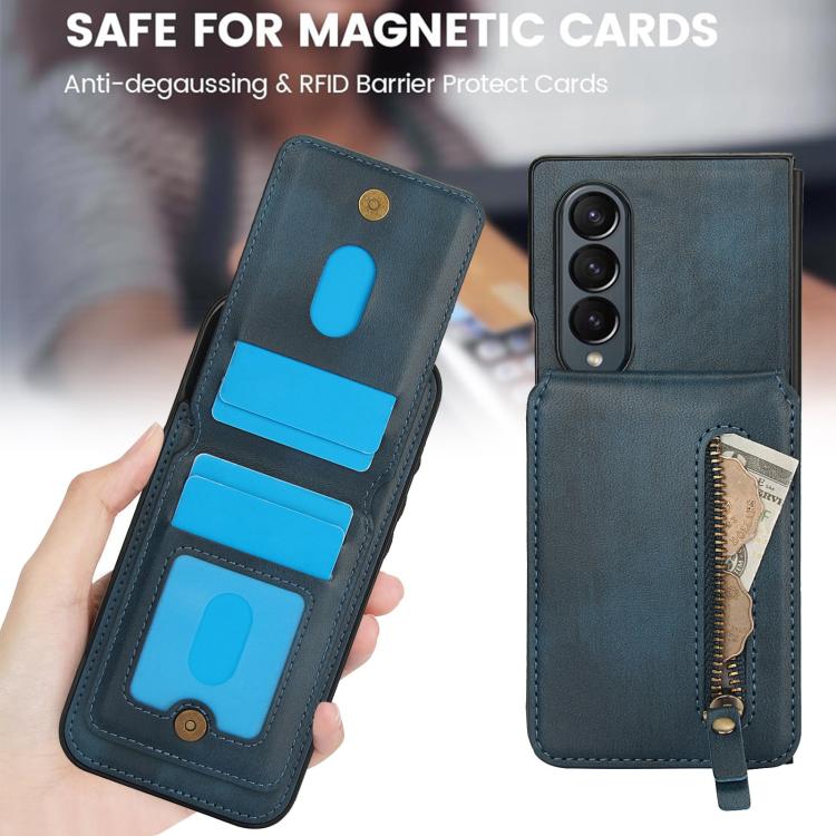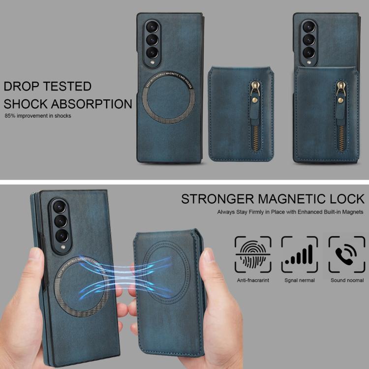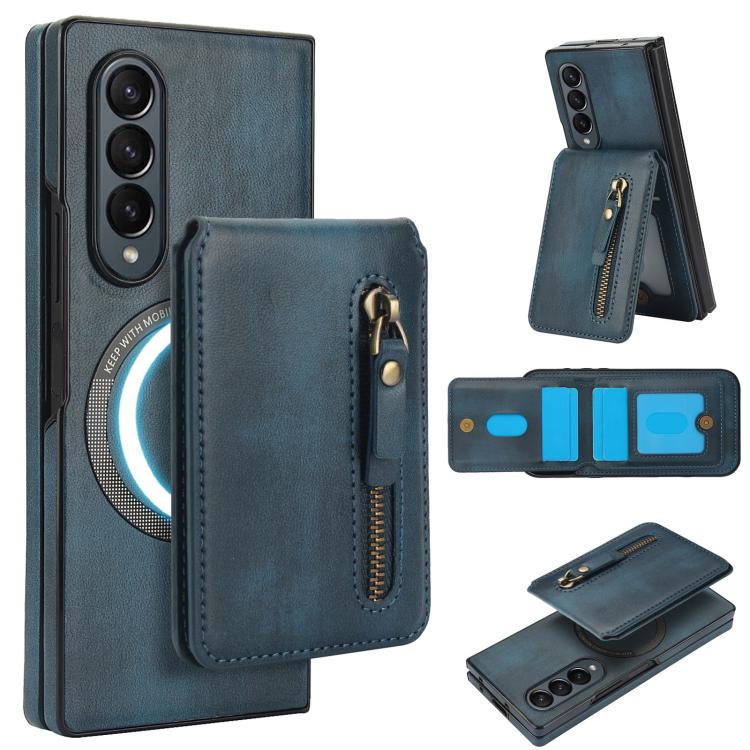 For Samsung Galaxy Z Fold4 Zipper Wallet Split MagSafe Leather Back Phone Case(Blue)