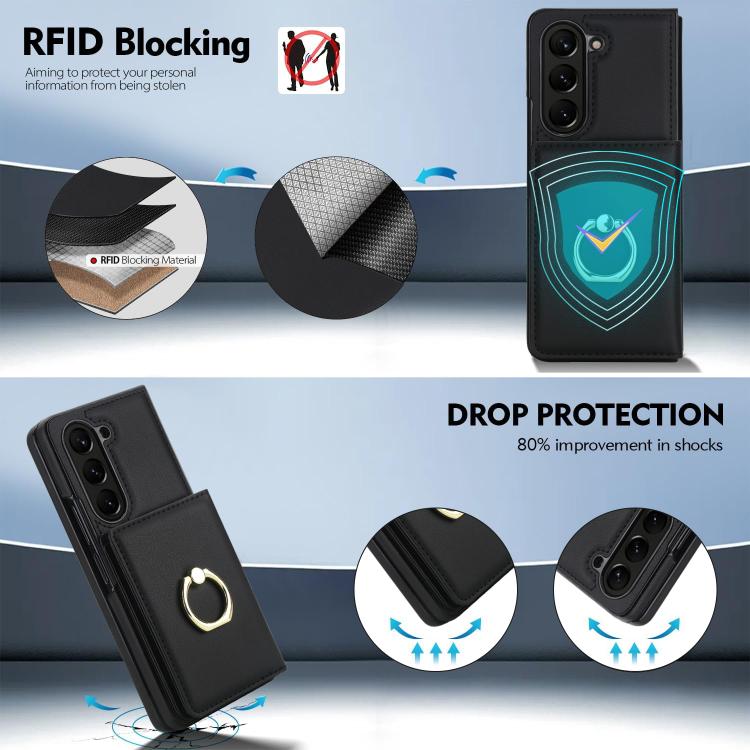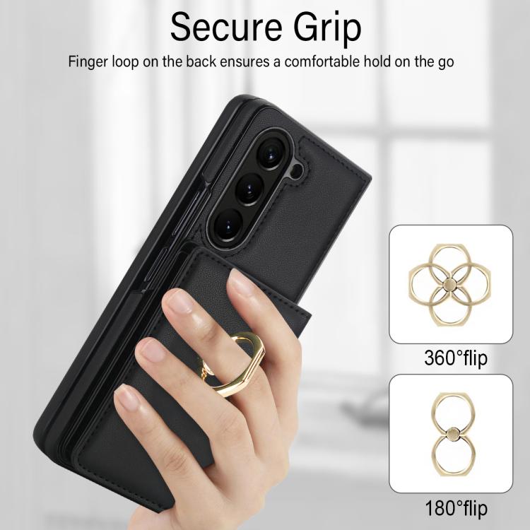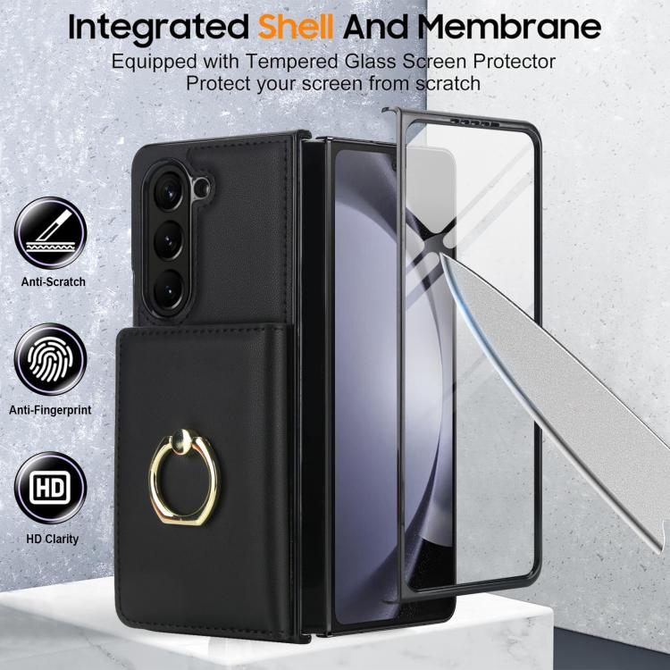 For Samsung Galaxy Z Fold5 5G Integrated Flip Cover Card Slot Holder Leather Phone Case with Ring(Black)
