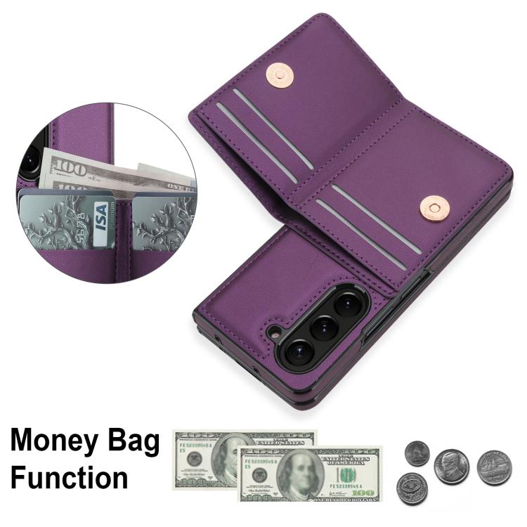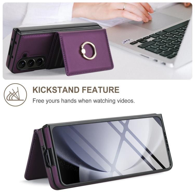 For Samsung Galaxy Z Fold5 5G Integrated Flip Cover Card Slot Holder Leather Phone Case with Ring(Dark Purple)